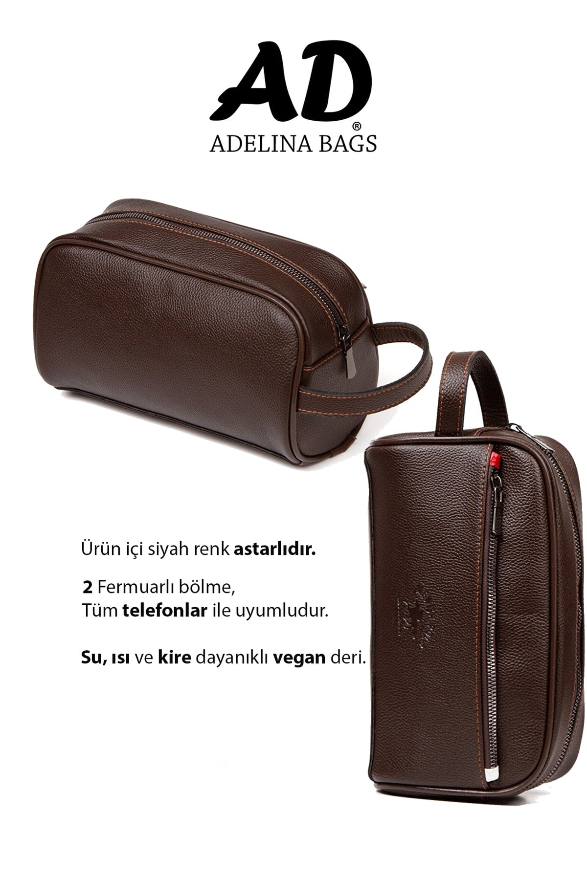 Men's leather portfolio clutch bag travel shaving cosmetic clutch bag. consists of 1 main and 1 front section. it has a functional and stylish structure. product dimensions, width: 24 cm, length: 12 cm, width: 10 cm. made of waterproof, heat and dirt resistant vegan leather. Improved version for clearer understanding and better search visibility. Suitable for users seeking detailed and reliable product information.