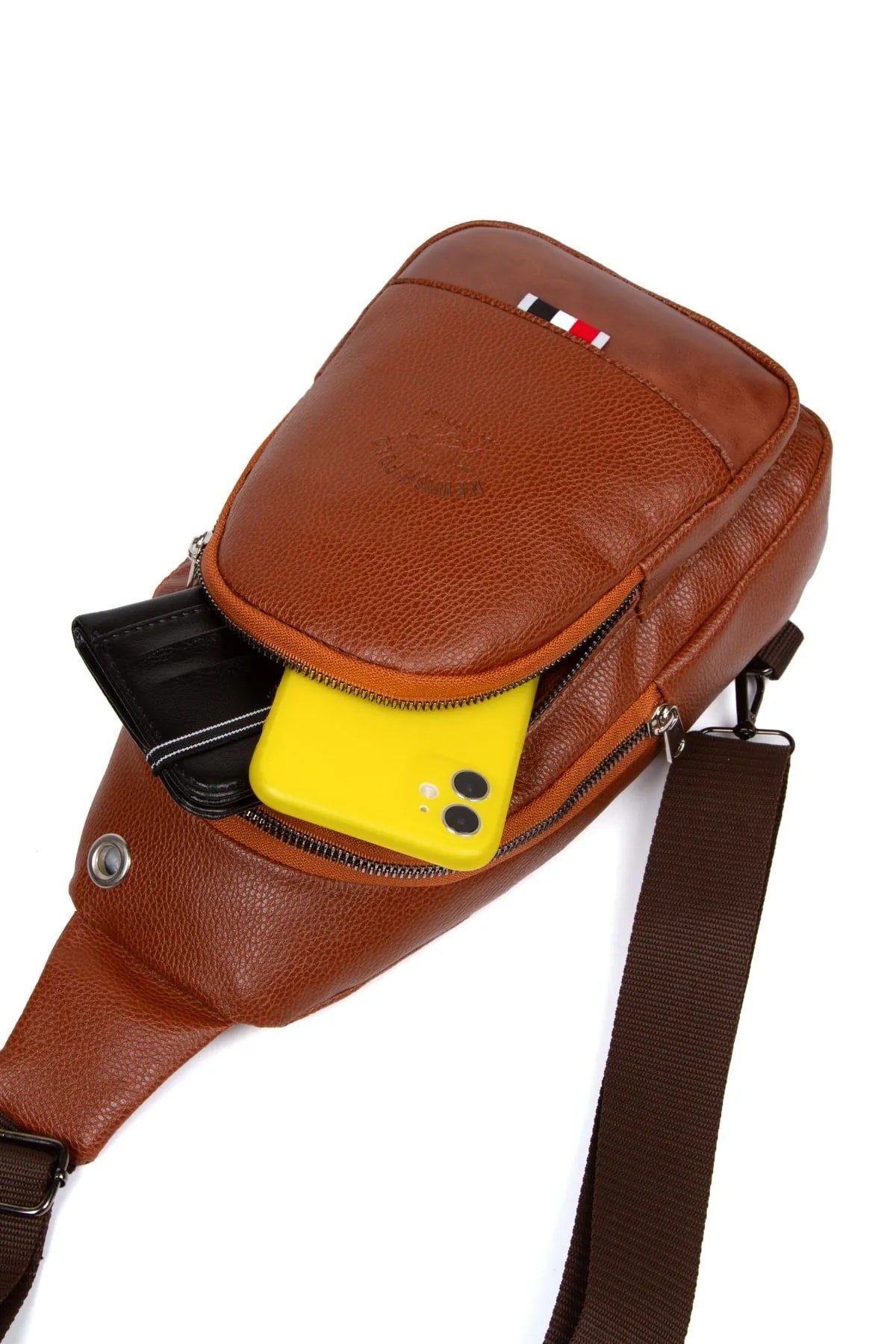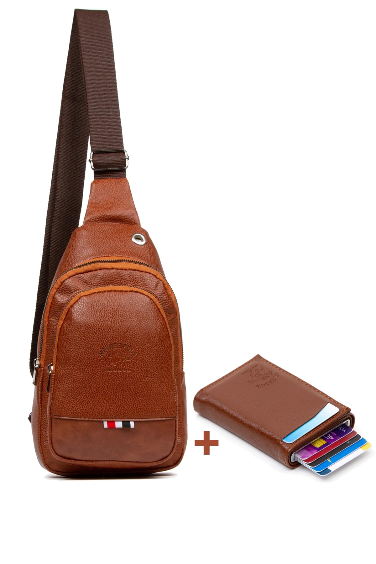 Adelina Unisex Tobacco Crossbody Chest And Shoulder Bag And Card Holder With Mechanism