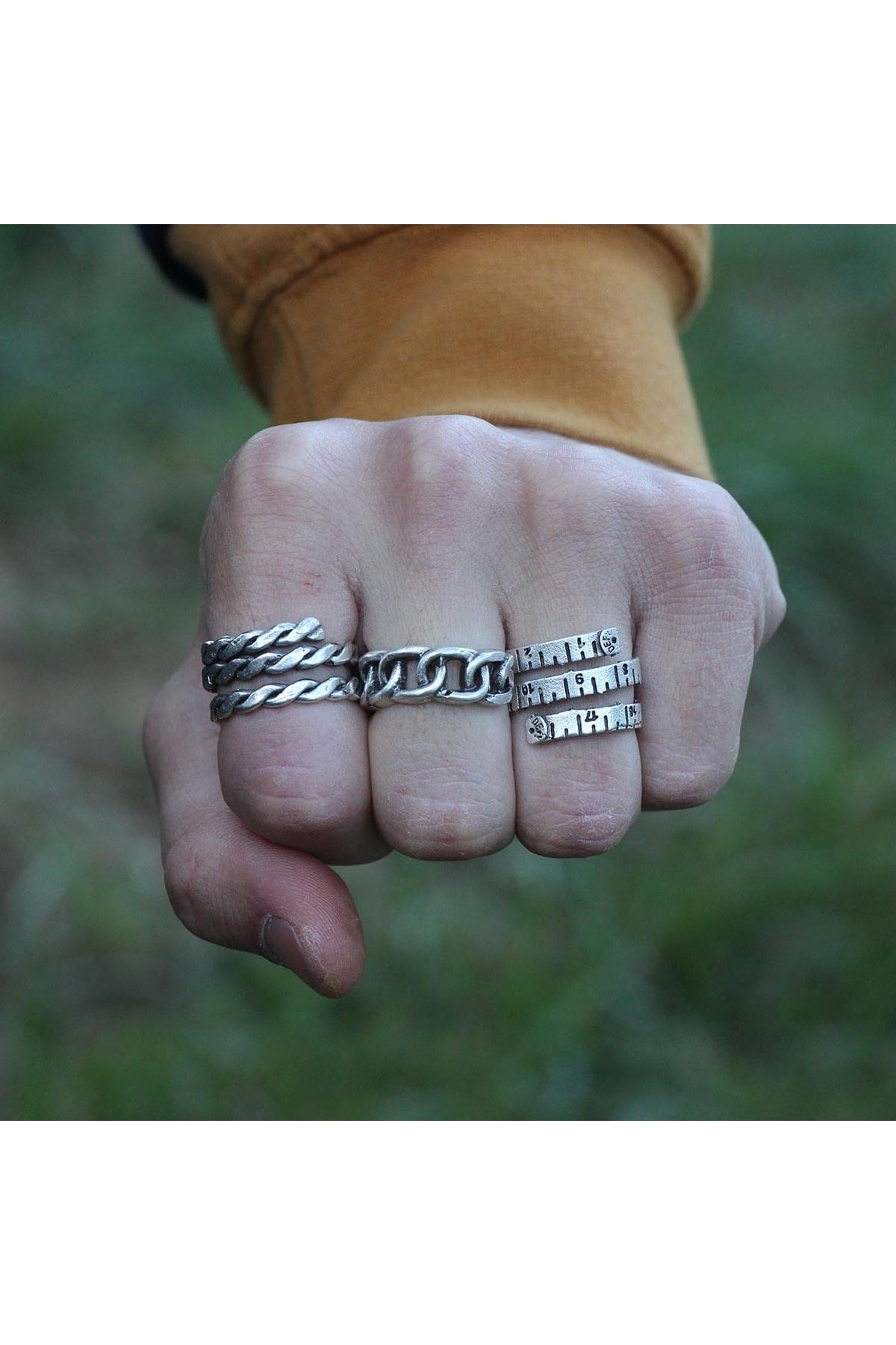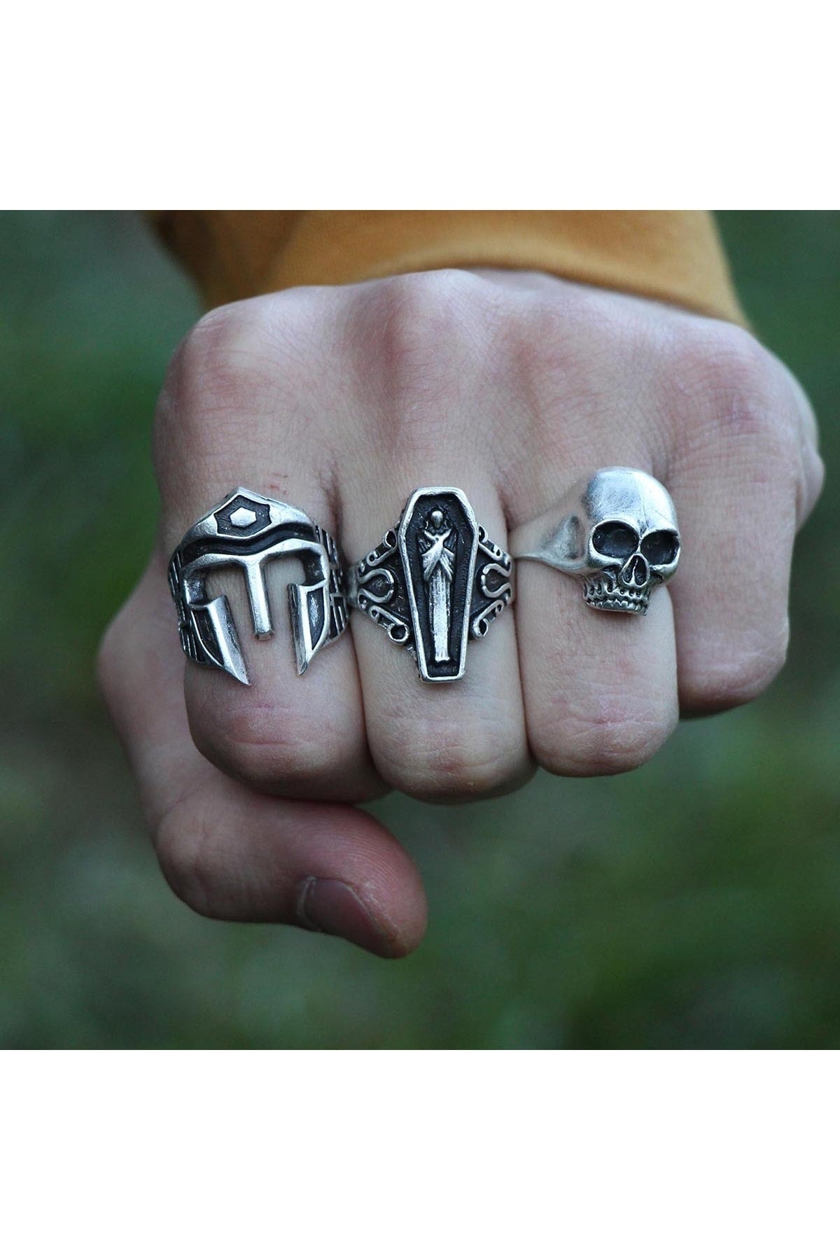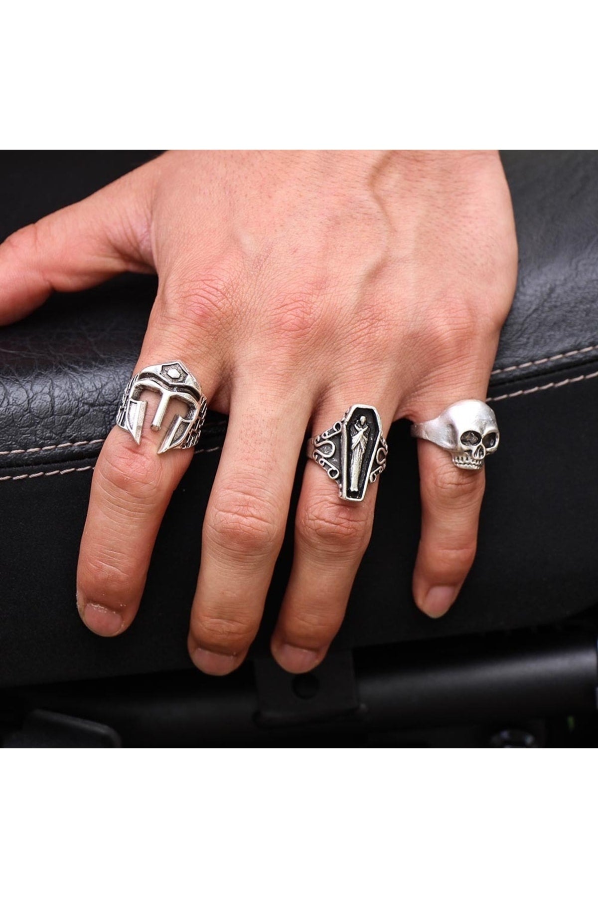 Antique Silver Plated Adjustable Model 3 Piece Men'S Ring Set