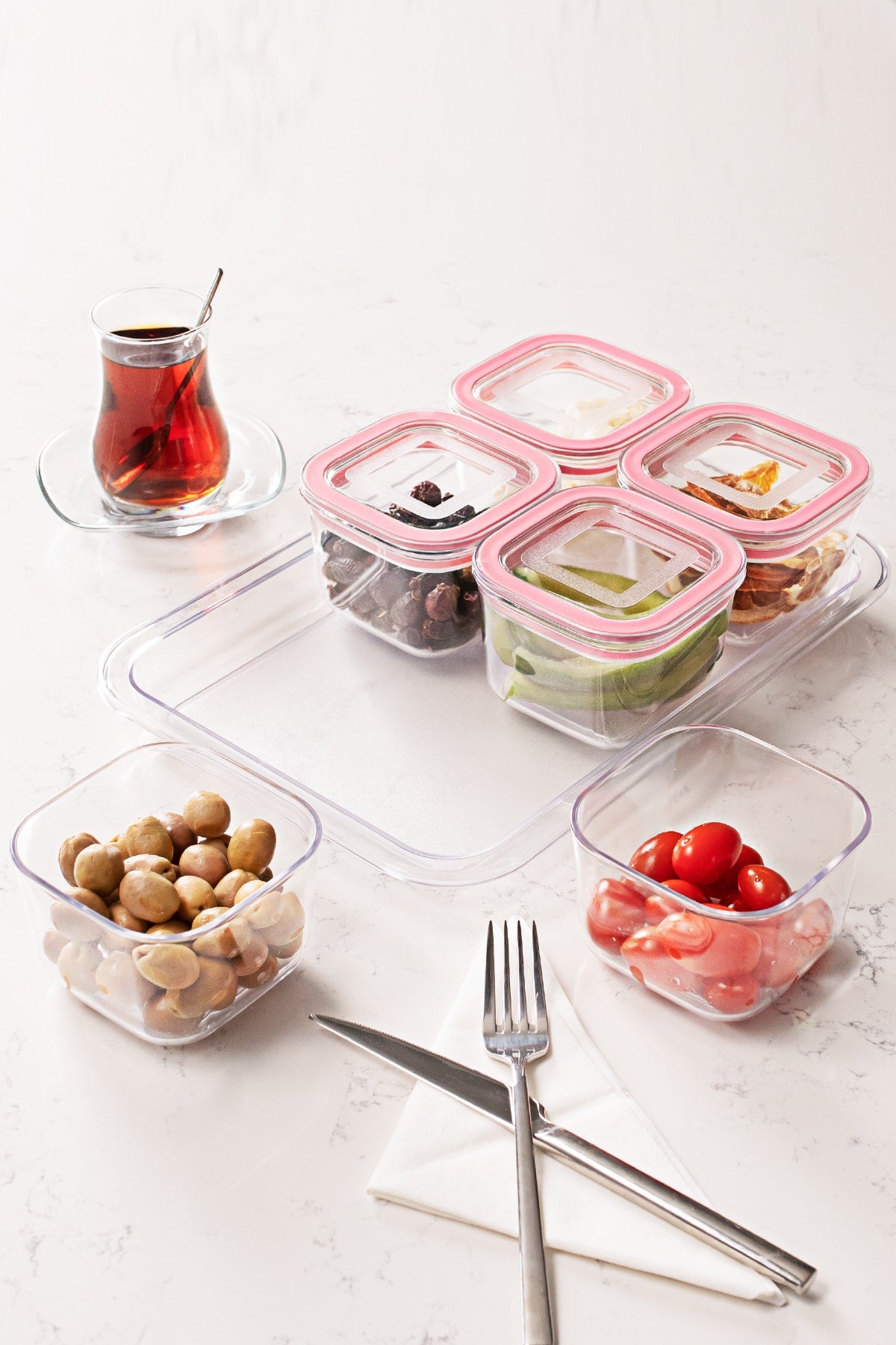 Azza Mini 13 Pieces 6 Compartments Vacuum Covered Storage Cookie Breakfast Set Pink