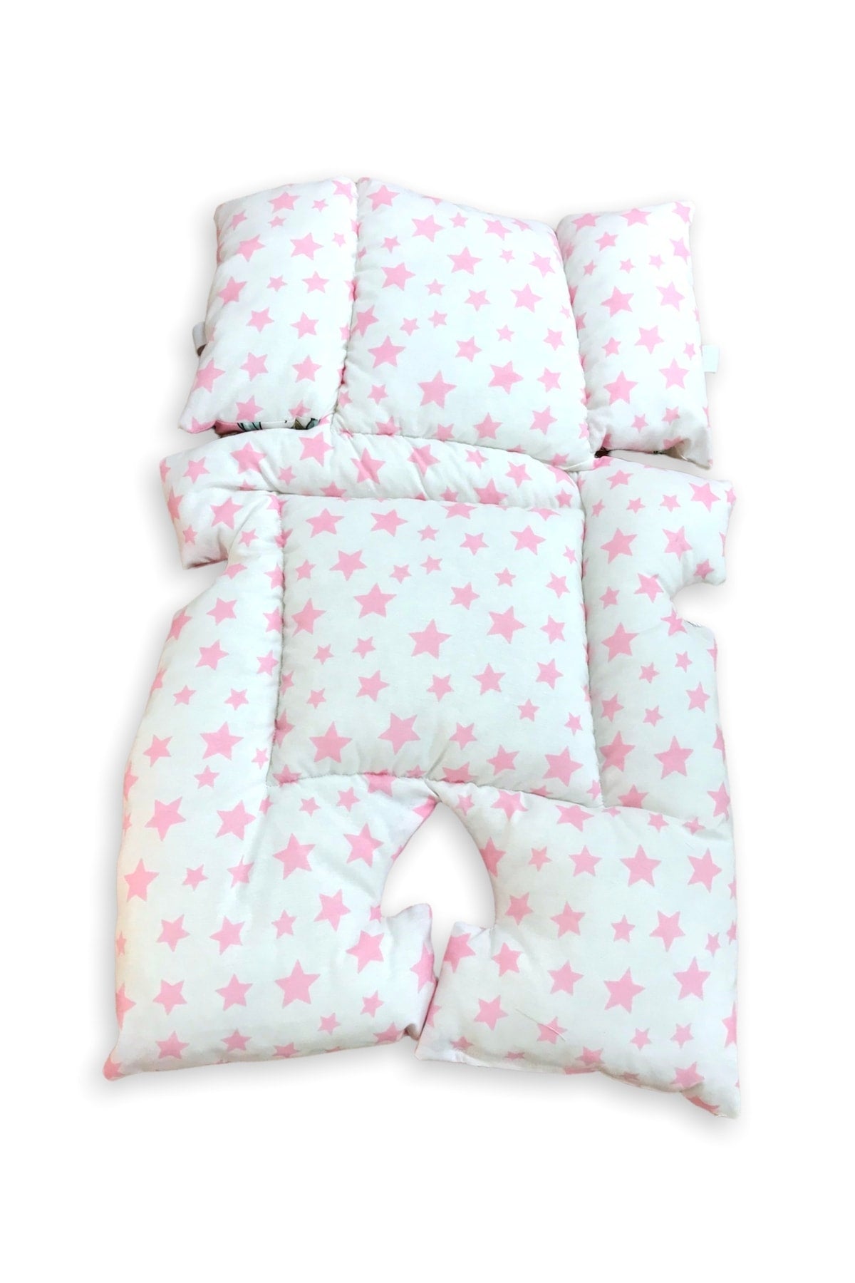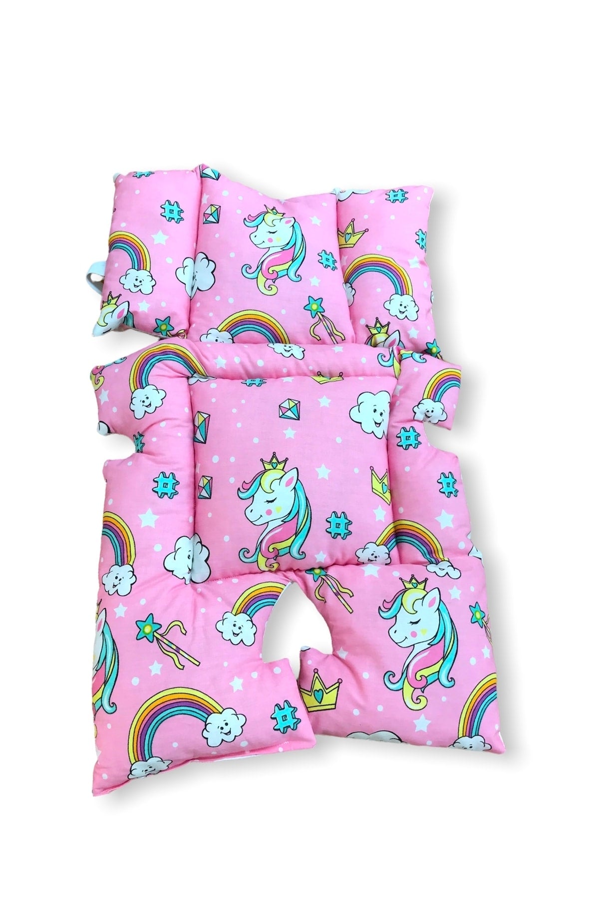 Baby Stroller And Car Seat Cushion With Waist Support Pink Unicorn Pink Star