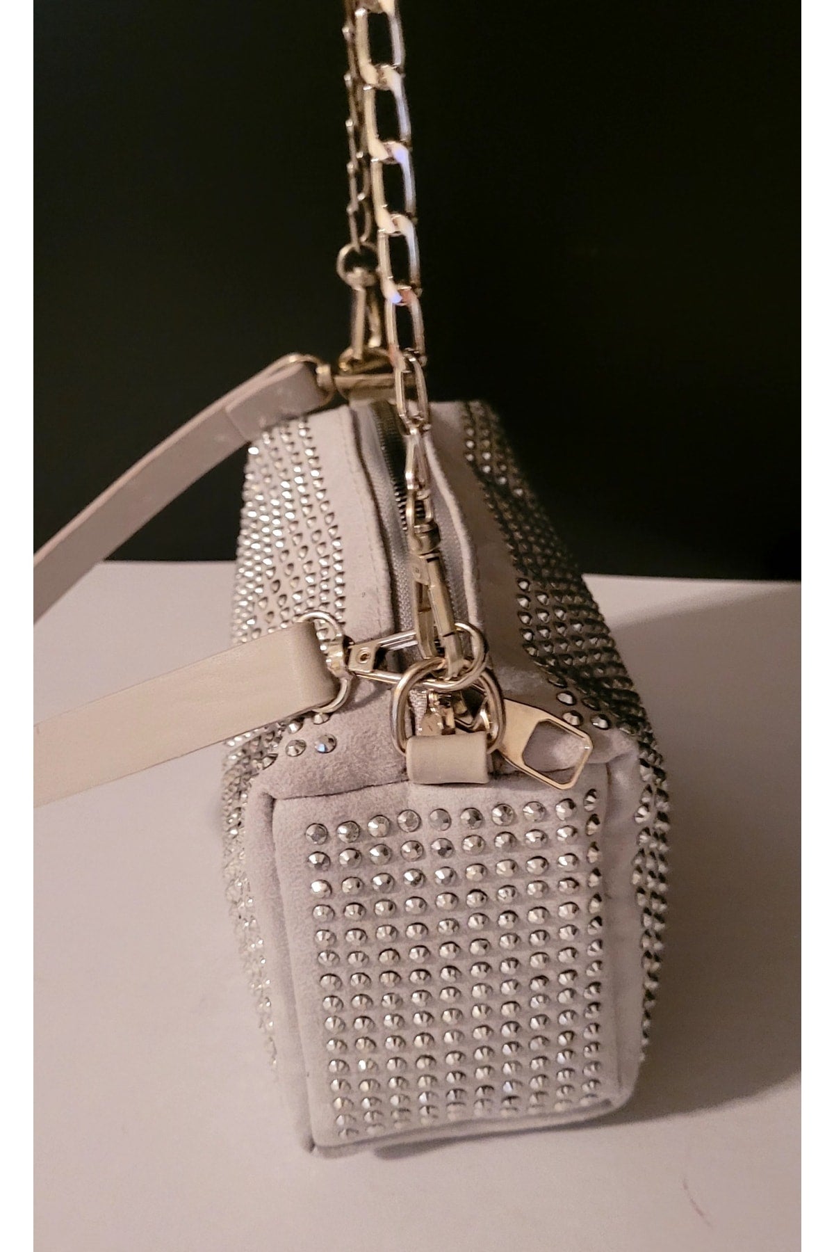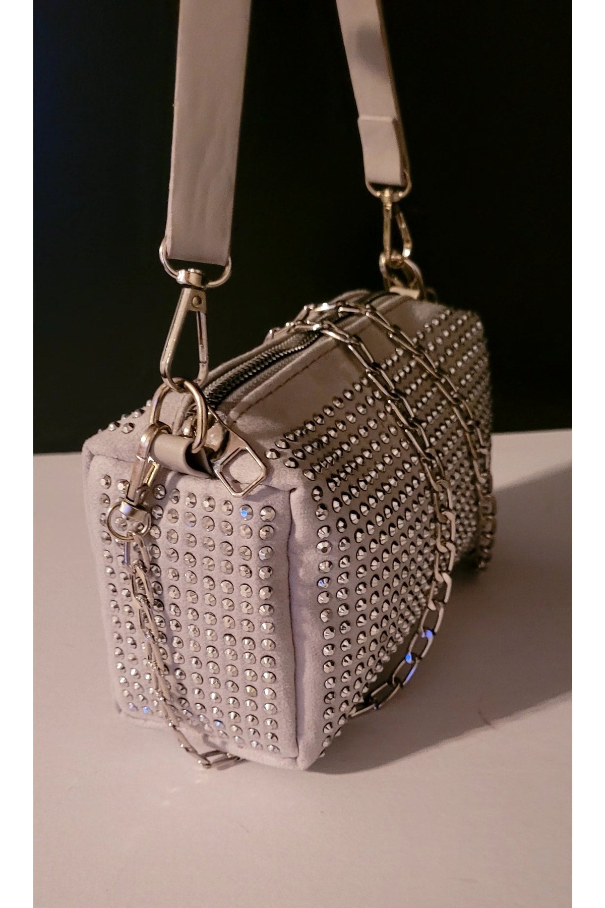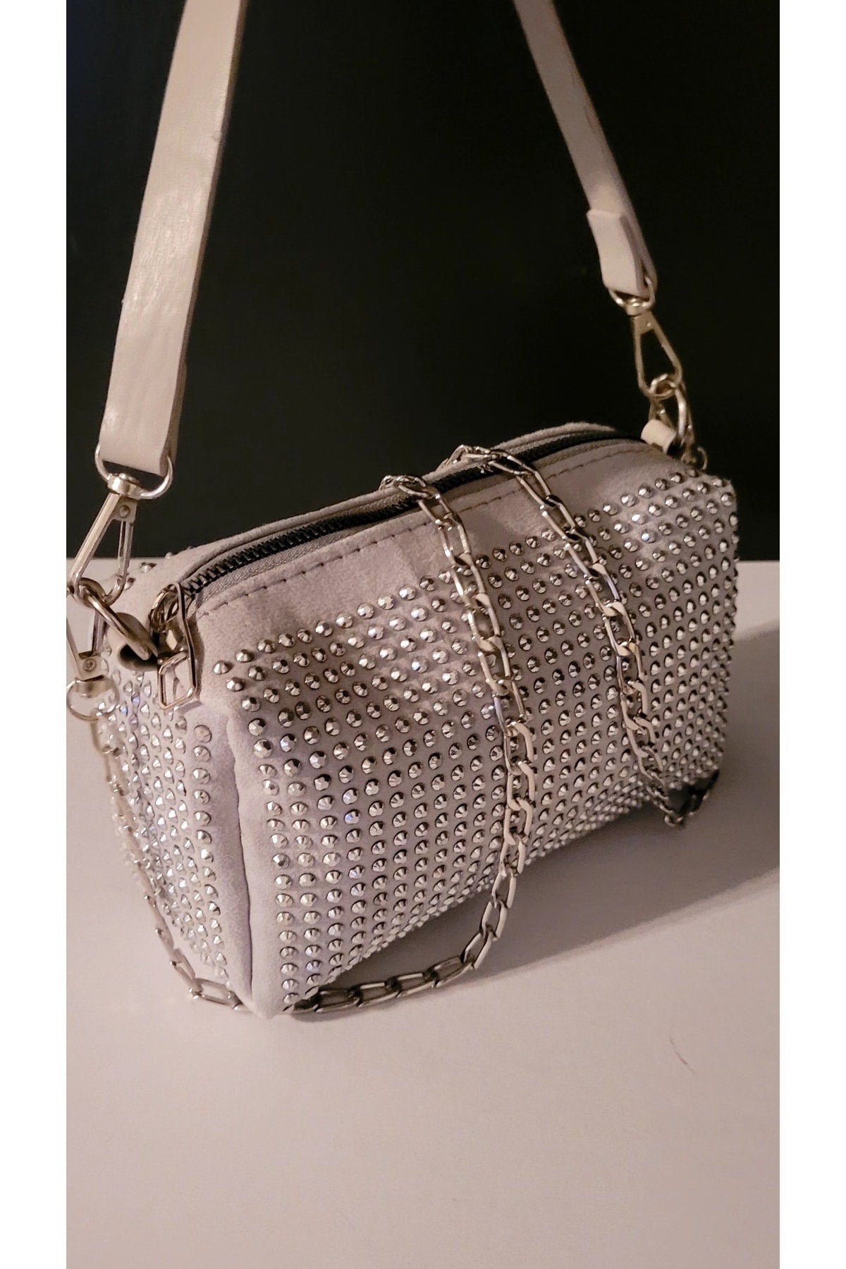 Bhm Gray Stone Chain Strap Hand And Shoulder Bag