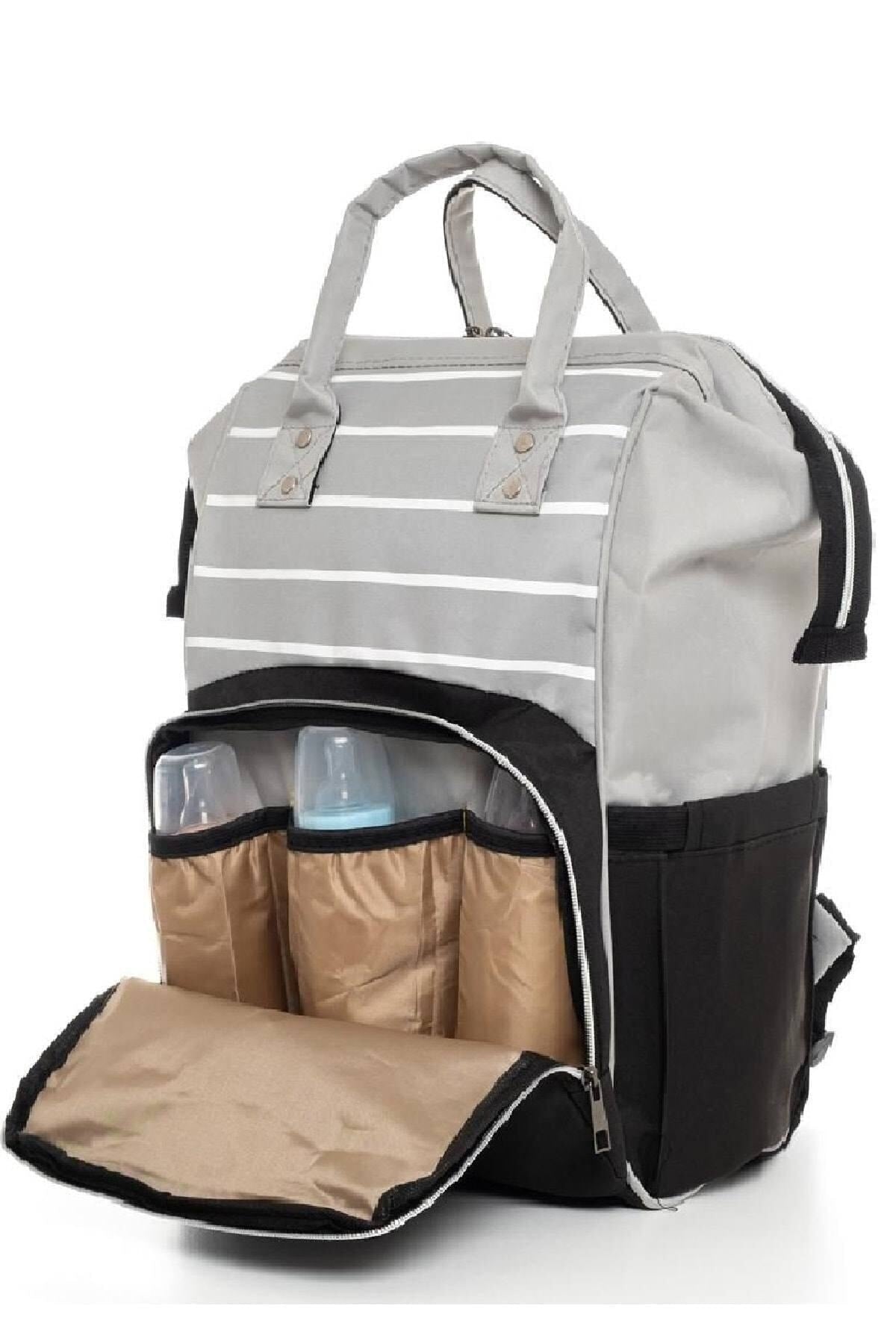 Black Smoked Striped Mother Baby Care Backpack With Baby Bottle Thermos Liquid Proof Stroller With Hanger Apparatus