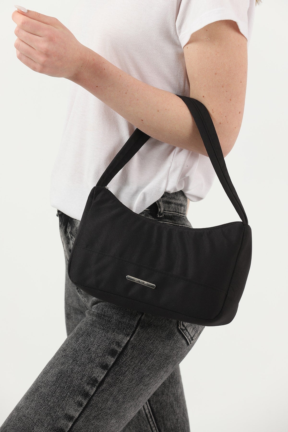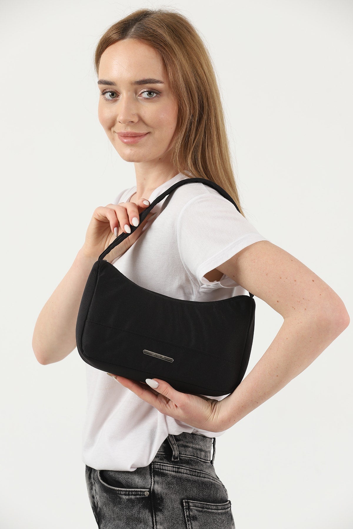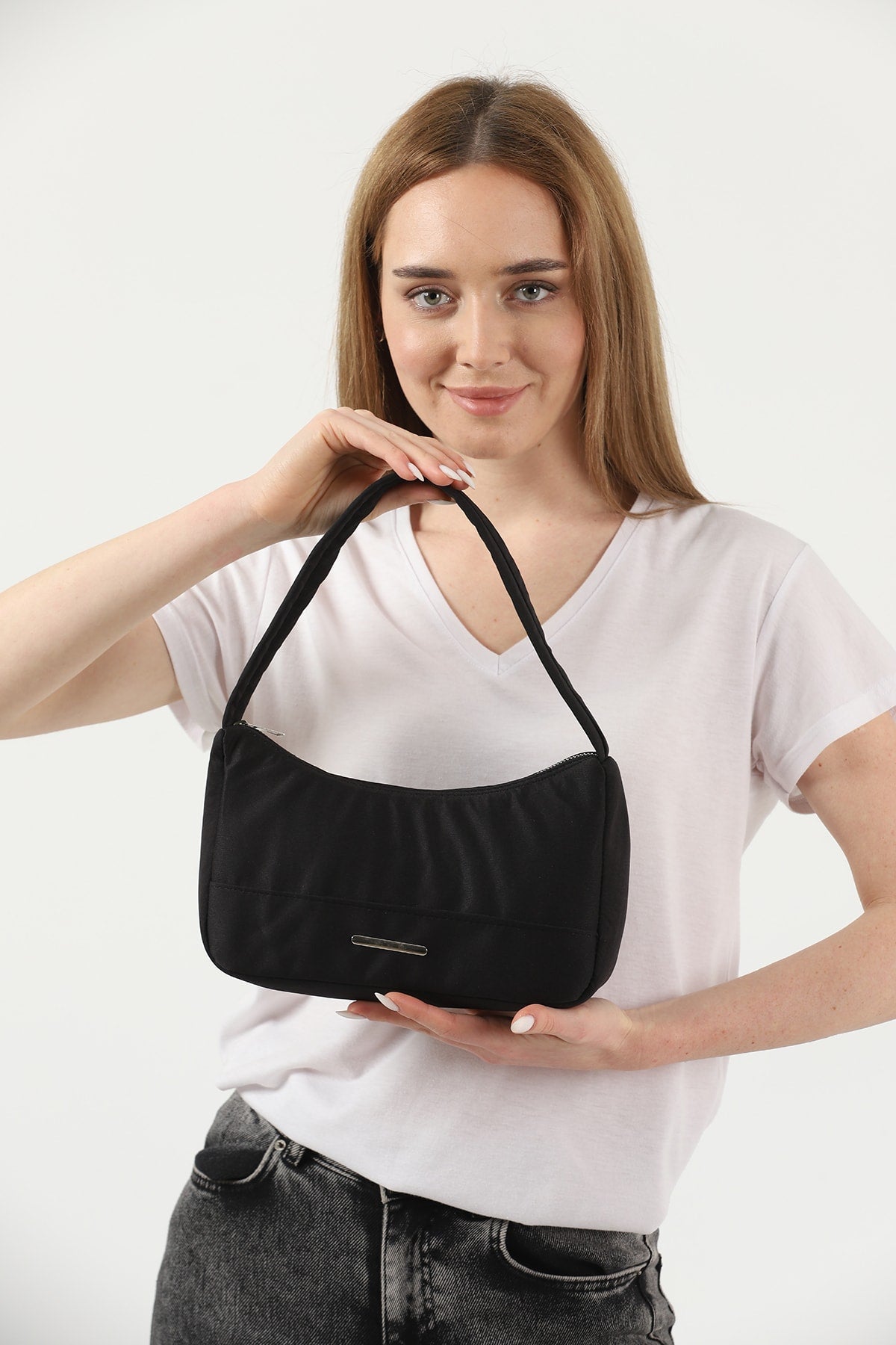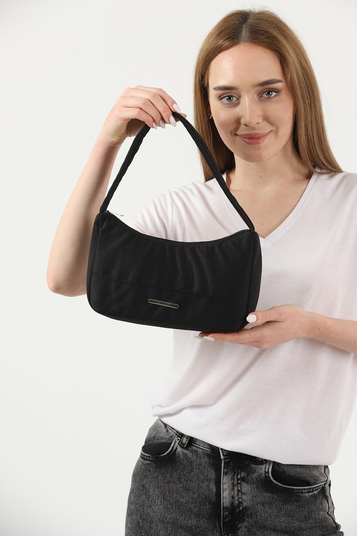 Black U26 Single Zipper Section Canvas Fabric Women'S Daily Baguette Hand And Shoulder Bag U:13 E:25 G:6