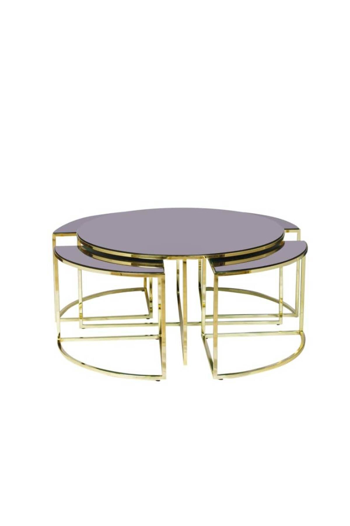 Brc Yonca 17547 Zigon-orta Sehpa Düz Siyah Temper Cam Metal Çelik Gold Kaplama El Yapım
