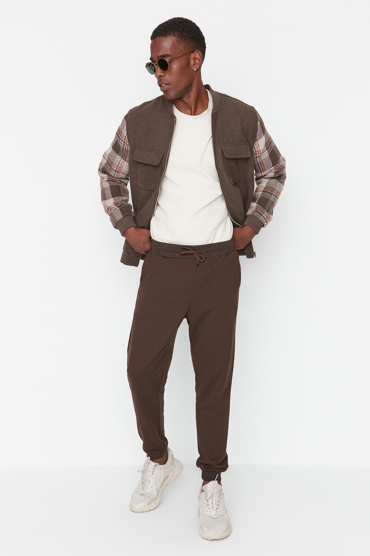 Brown Men'S Basic Regular/Normal Fit Elastic Jogger Sweatpants Tmnss20Ea0053