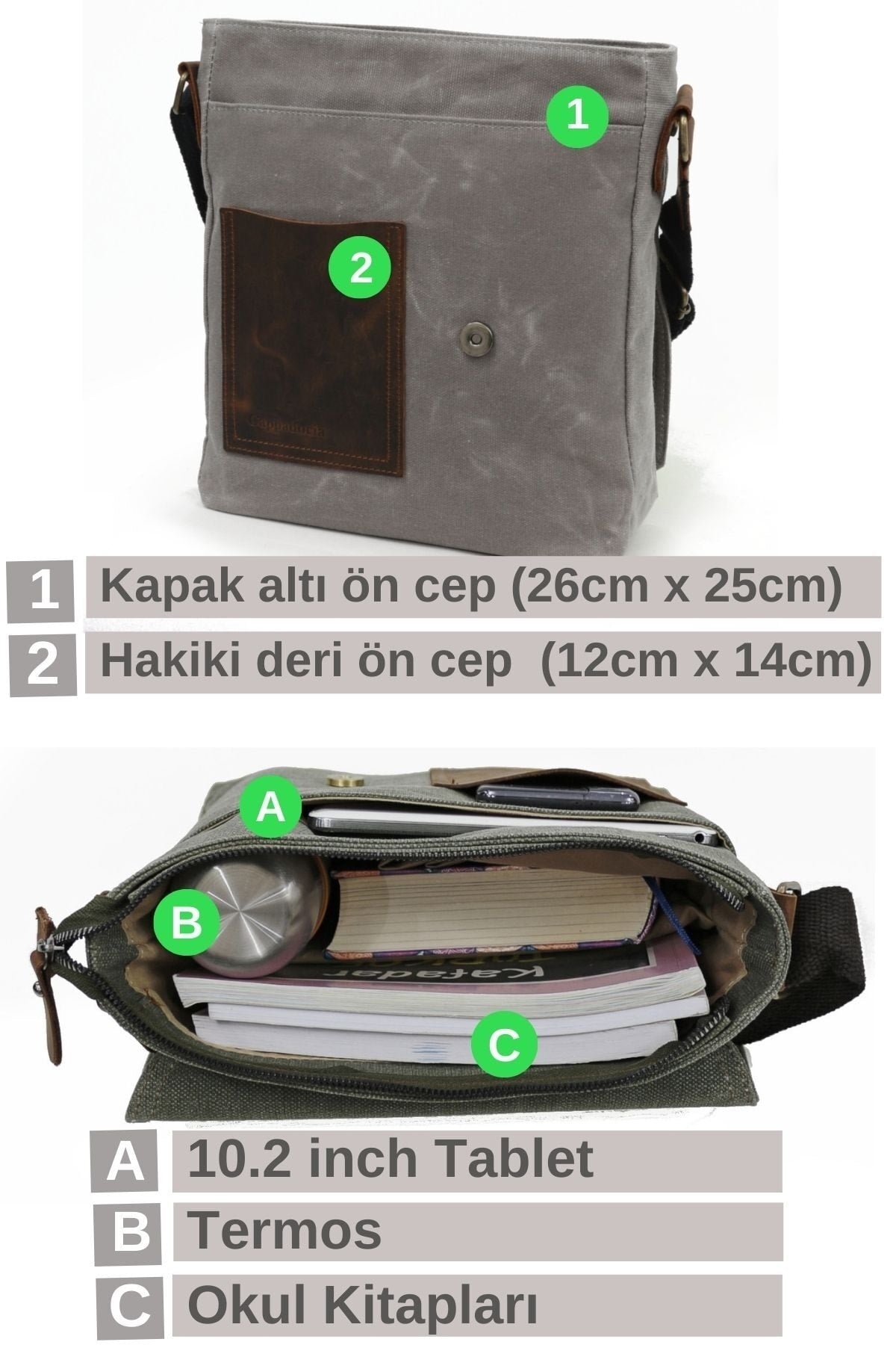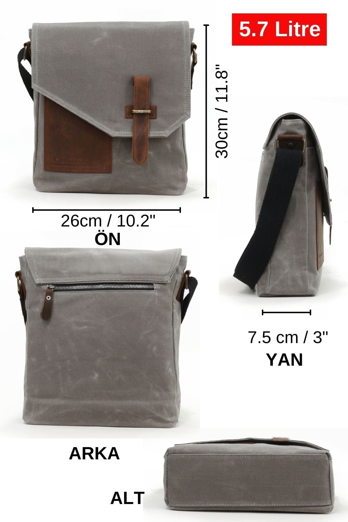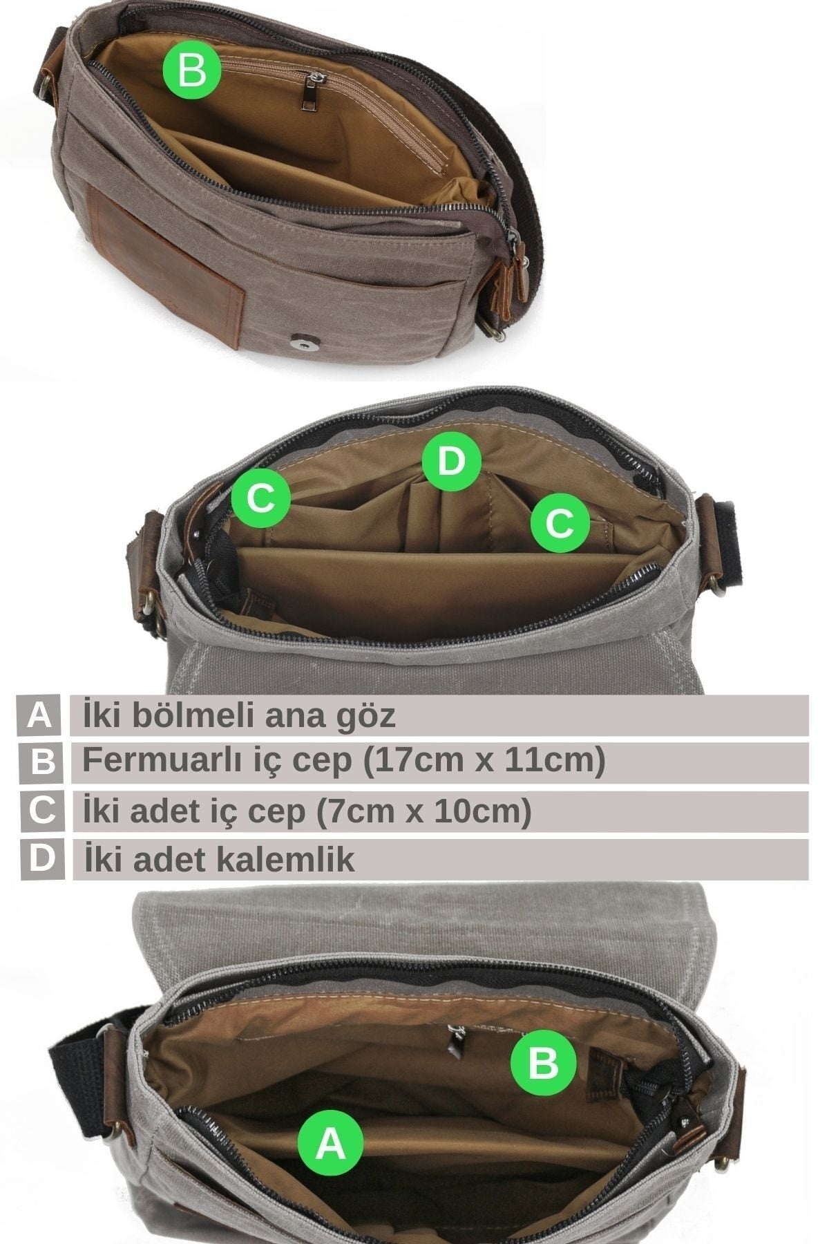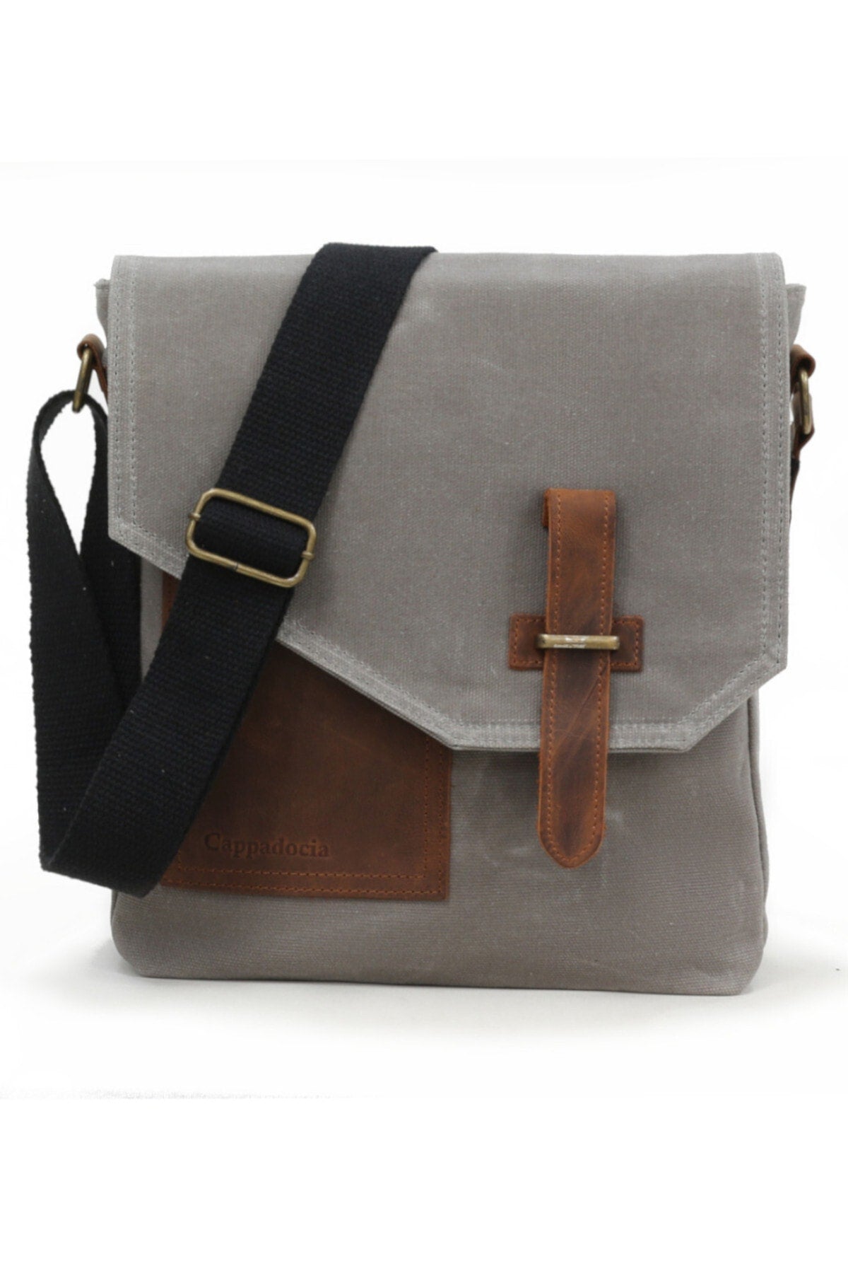 Cappadocia Genuine Leather 4035 Teos Waterproof Gray Postman Shoulder Waxed Canvas Laptop Bag
