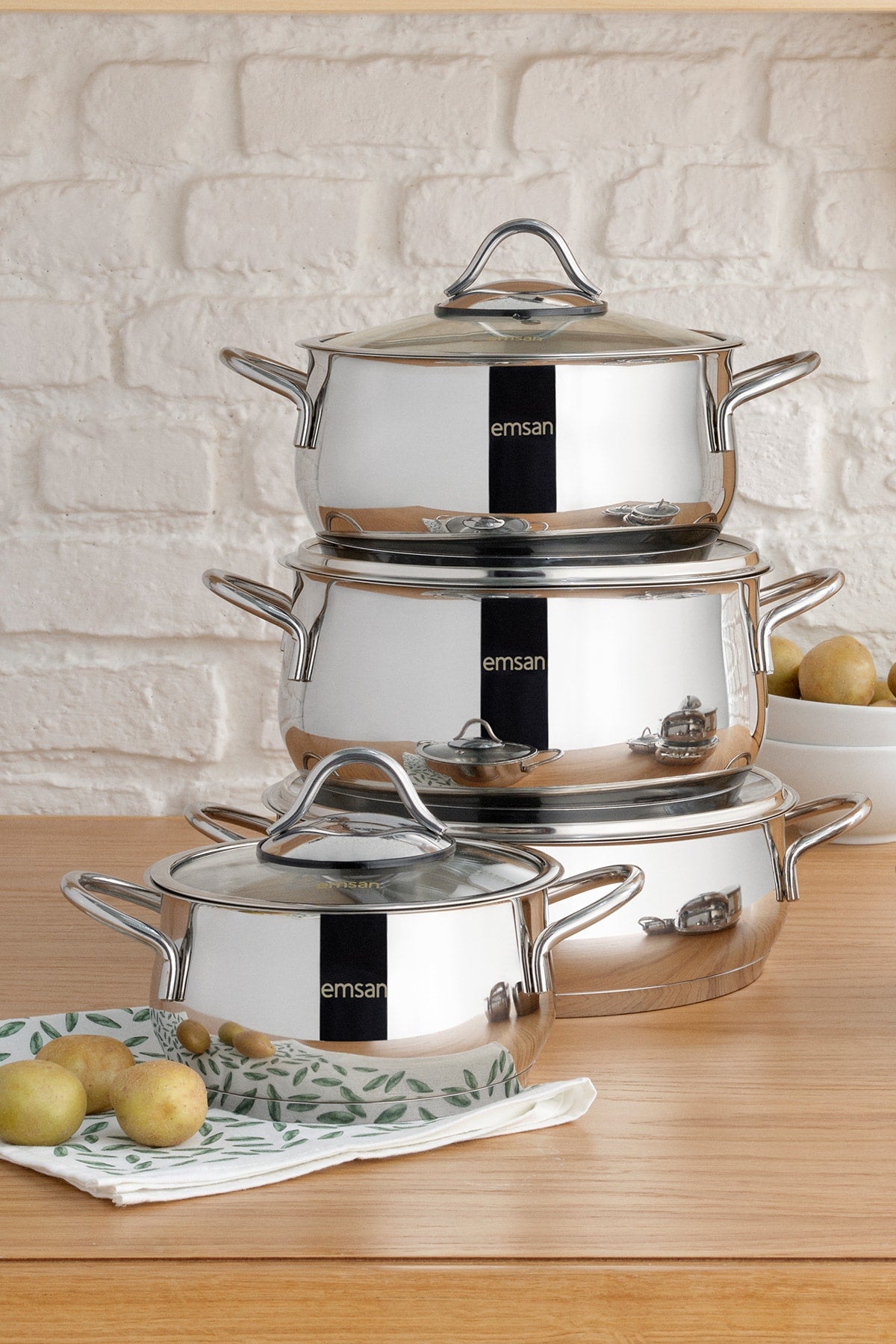 Emsan cemre induction-based 8 piece steel cookware setit is a classic… it combines the durability and usefulness of the cemre series steel cookware, which is produced with 304 quality emsan steel, with an elegant design. thanks to its steel body, the cemre series, which allows food to be cooked without losing its vitamin and mineral values, has served as a delicious and healthy dish for many years. you can use it to make meals. a stylish design with its round stainless steel body. stylish design with ergonomic handlestainless steel body, ergonomic handle and glass cover. you can cook even at low temperatures with the energy capsule base, which traps the heat inside the pot for a long time. it is more resistant to impacts thanks to its pyrex lid feature. with its stylish stainless steel body design suitable for today's modern kitchens, emsan cemre 8 piece cookware set. set contents16 cm pot 1.6 liter 20 cm pot 2.9 liter Improved version for clearer understanding and better search visibility. Suitable for users seeking detailed and reliable product information.