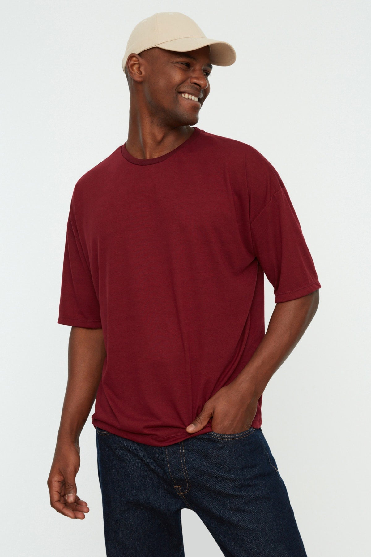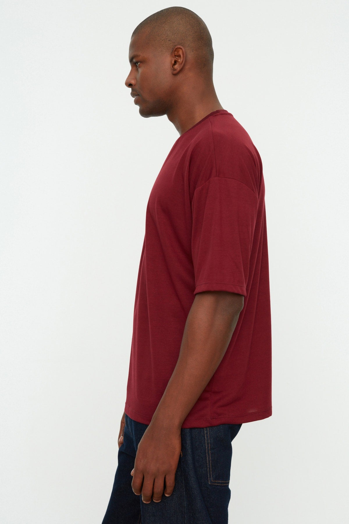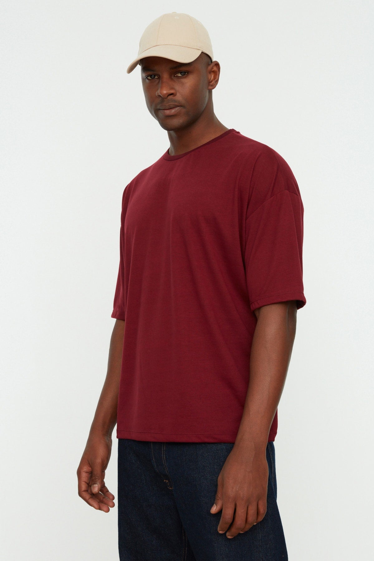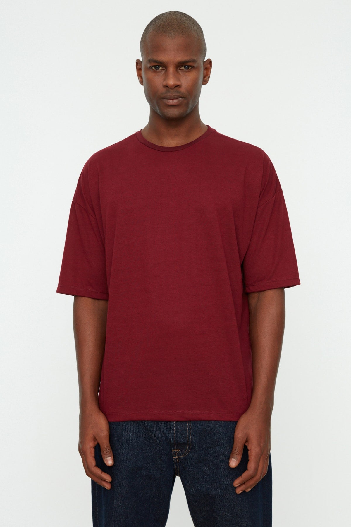 Claret Red Men'S Basic Crew Neck Oversize Short Sleeve T-Shirt Tmnss22Ts0300
