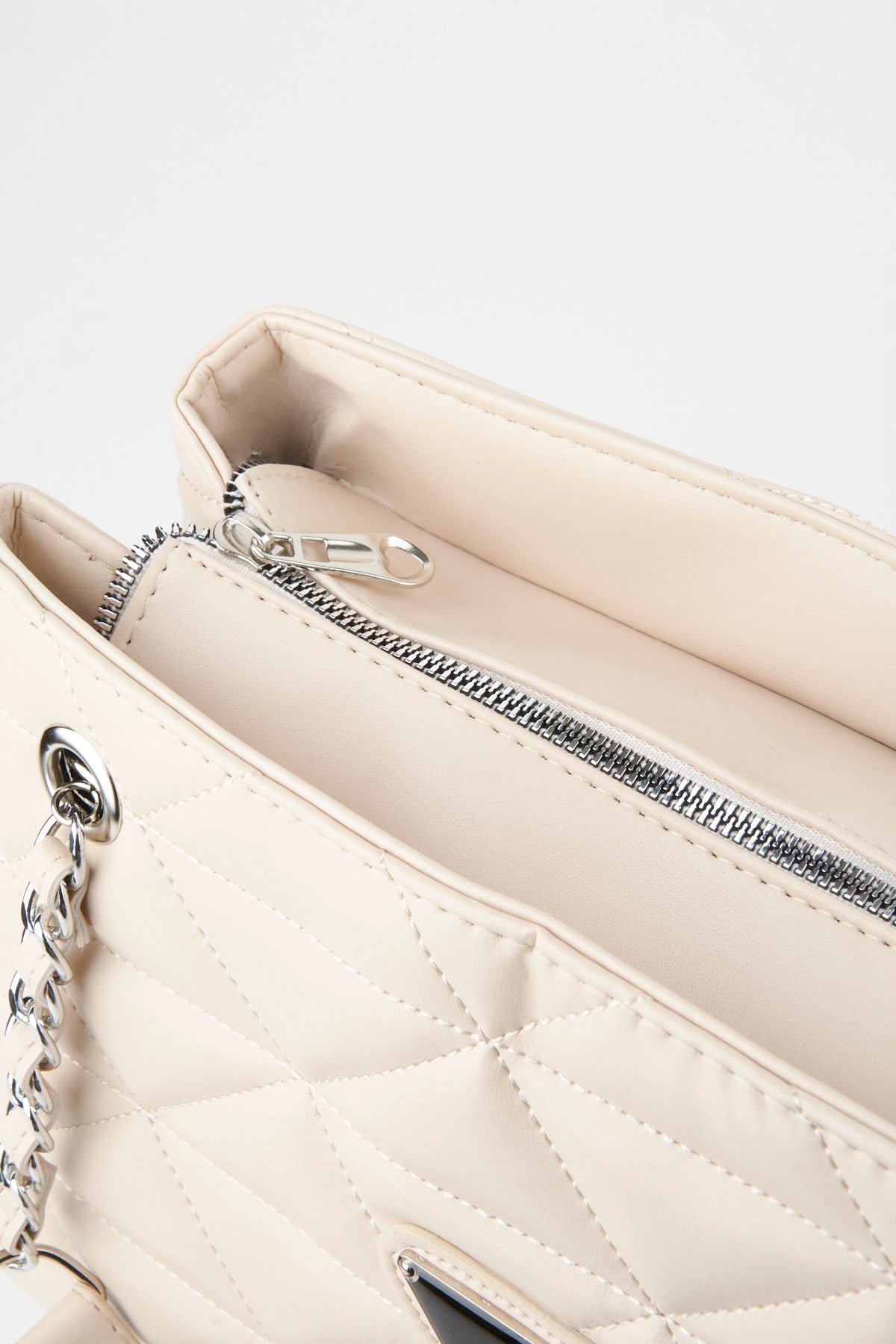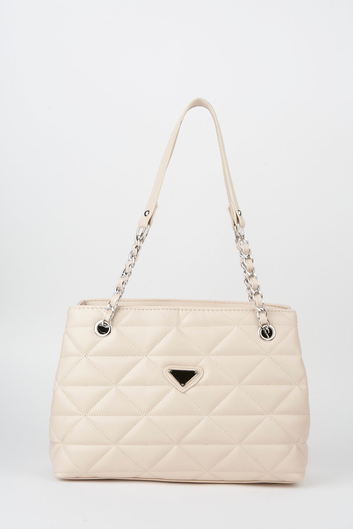 Crocos Cream Leather Quilted 3 Compartment Zipper Closure Lined Hand Arm And Shoulder Bag With Chain Strap
