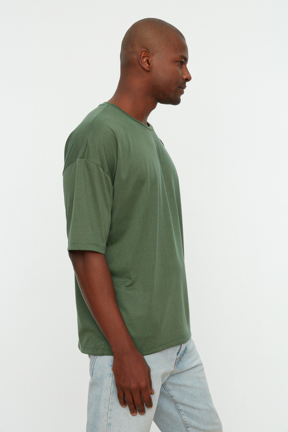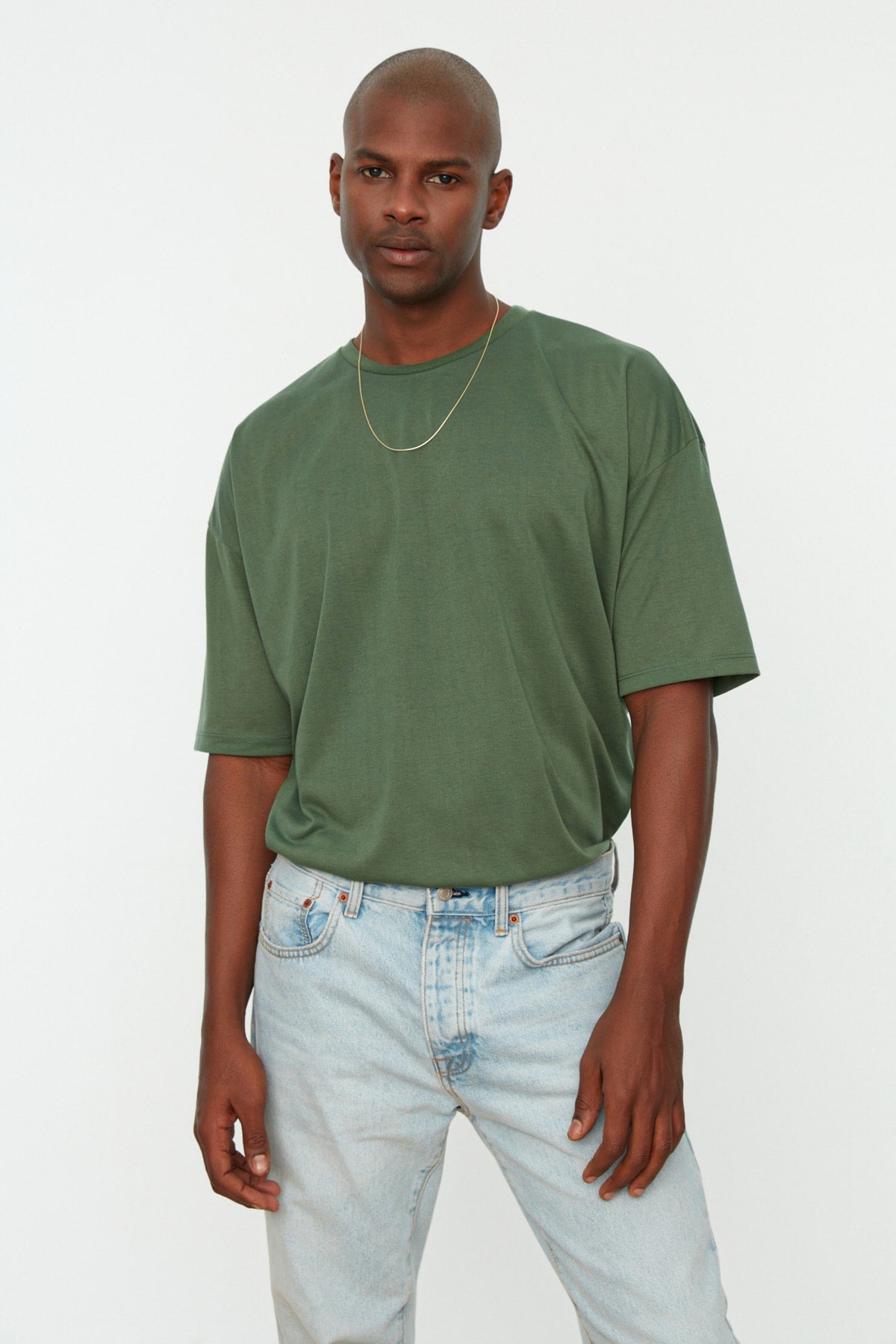Dark Green Men'S Basic Crew Neck Oversize Short Sleeve T-Shirt Tmnss22Ts0300