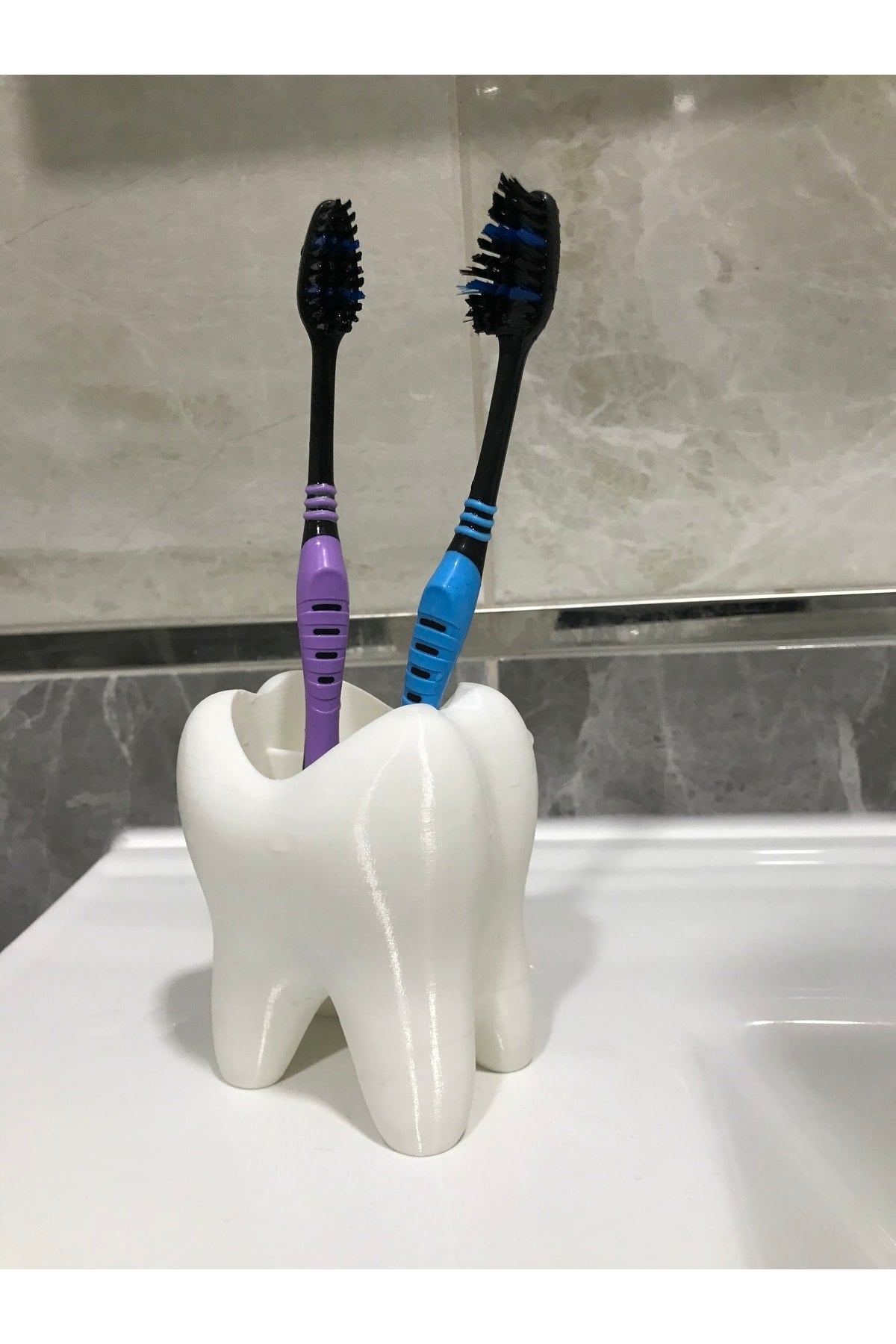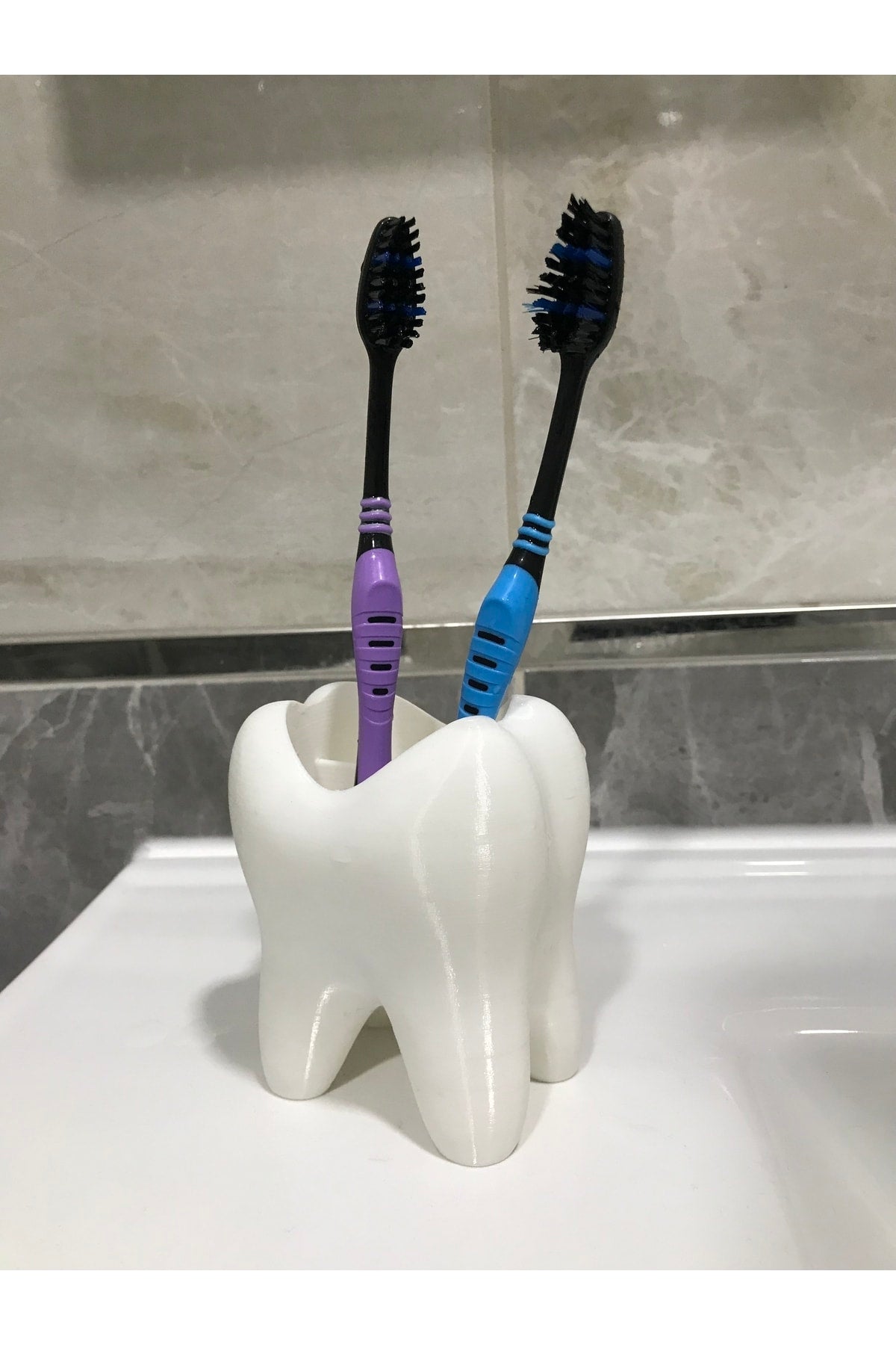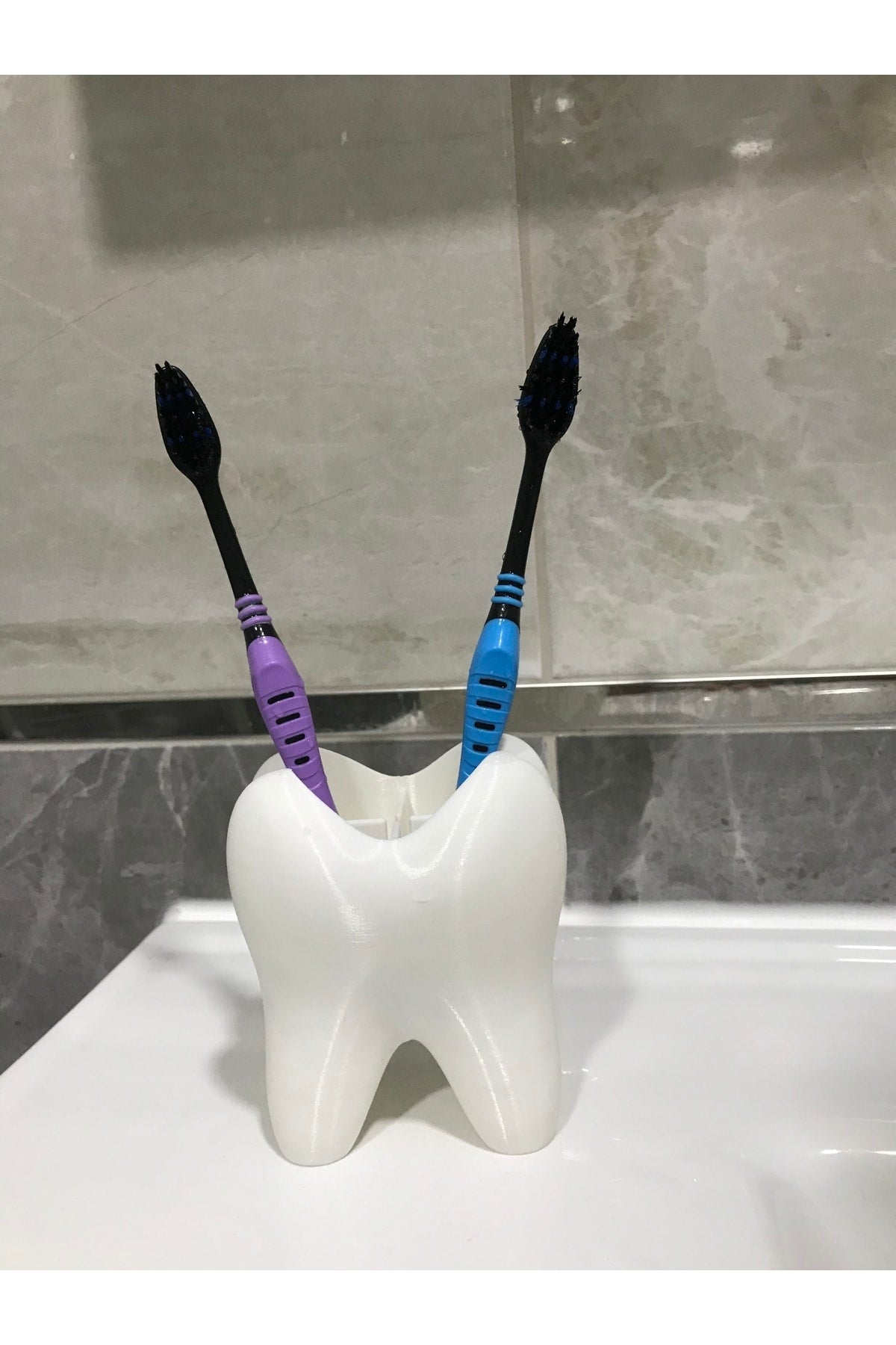 Diş fırçalarınızı düzenli ve kolay erişilebilir tutmak için ideal, diş şeklindeki tasarımı sayesinde pratik kullanım sunar; Dört ayrı bölmesi ile farklı diş fırçalarını ayrı ayrı saklama imkanı sağlar, böylece her bir fırçanızın temiz ve hijyenik kalmasına yardımcı olur; Dayanıklı plastik materyali sayesinde uzun ömürlü kullanım vaat eder ve kolay temizlenebilir yapısıyla hijyenik bir ortam sunar; Diş fırçalarınızın düzenli ve düzenli kalmasını sağlayarak, sabahları daha hızlı ve etkili bir şekilde dişlerinizi fırçalamanızı kolaylaştırır;