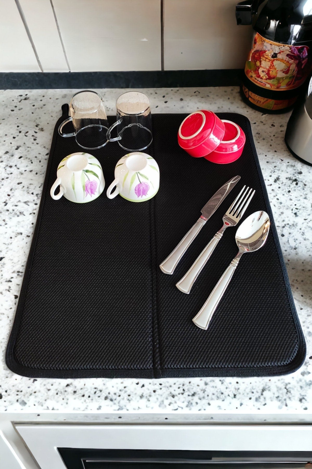 Dish Drying Mat, Dish Drying Cover, Non-Slip Base Absorbent Dish Rack, Folding Dish Mat