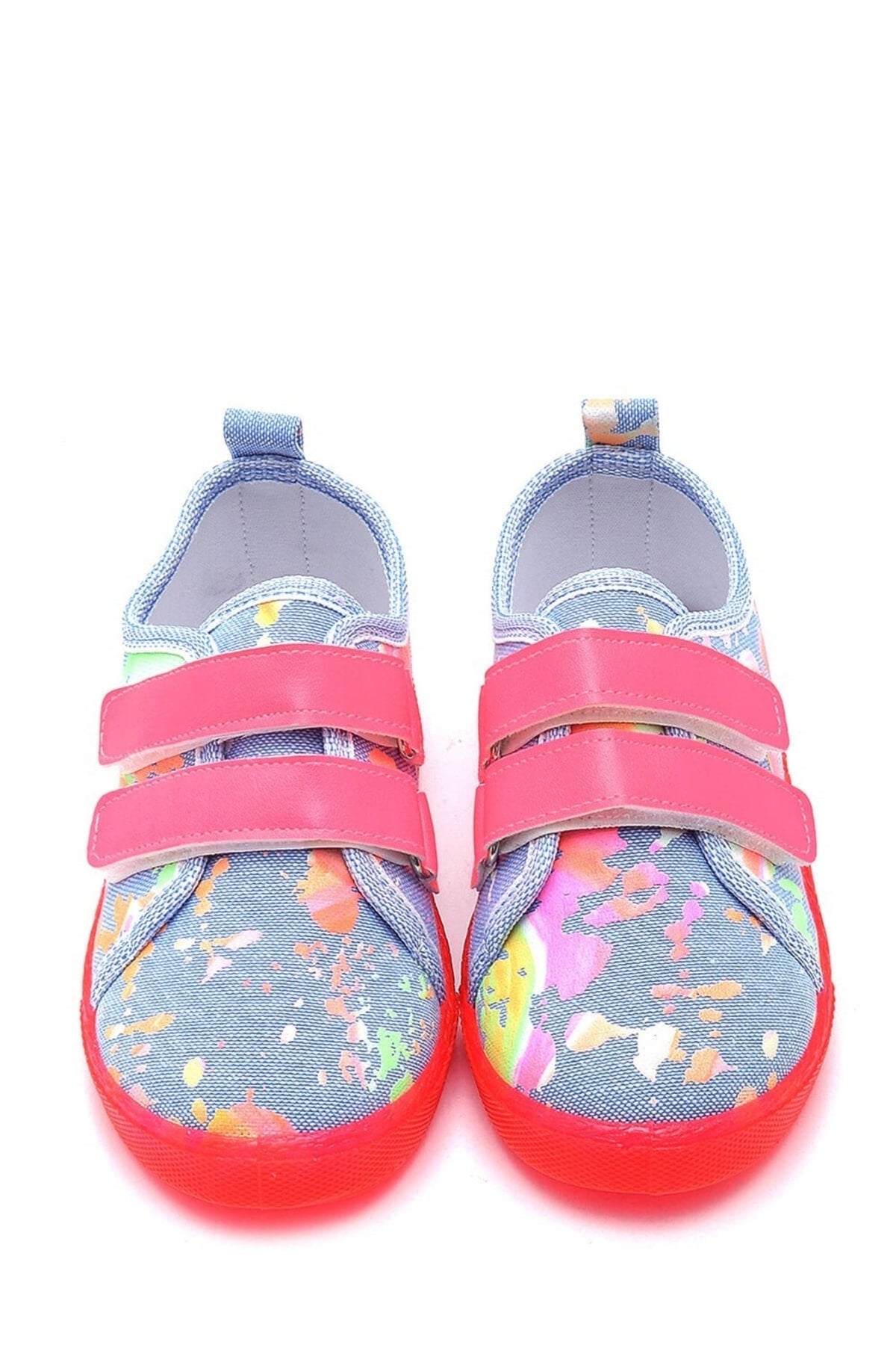 Double Velcro Neon Sole Kids Linen Sports Shoes-Blue-F-4002