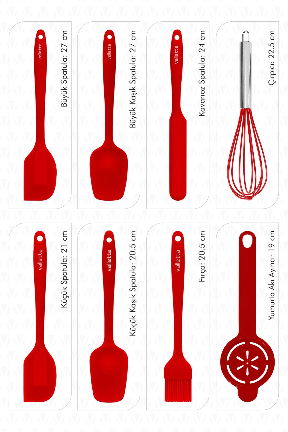 Drongo Heat Resistant Fireproof Non-Stick Silicone Spatula Set 8 Pieces Red