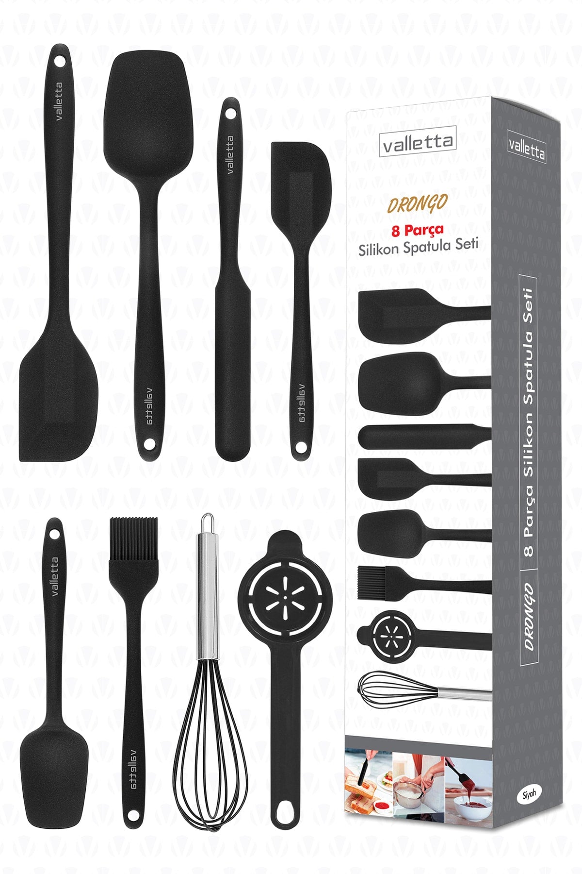 Drongo Heat Resistant Fireproof Nonstick Silicone Spatula Set 8 Pieces Black