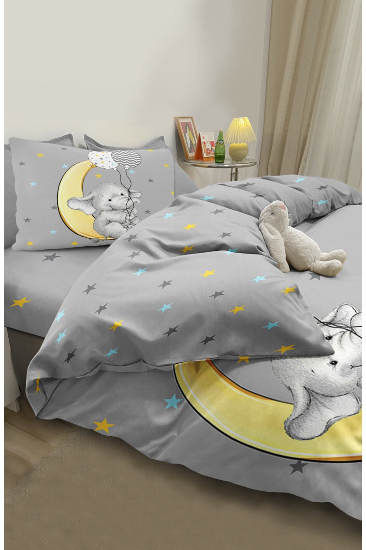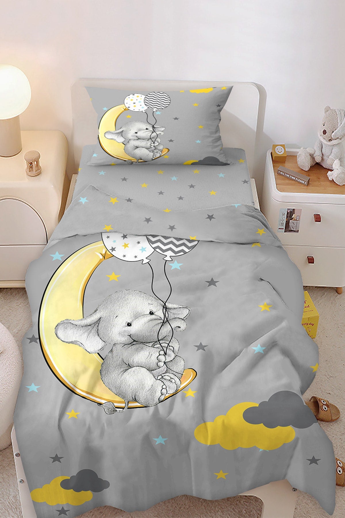Elephant Patterned Cute Balloon Holding Single Baby Kids Duvet Cover Set