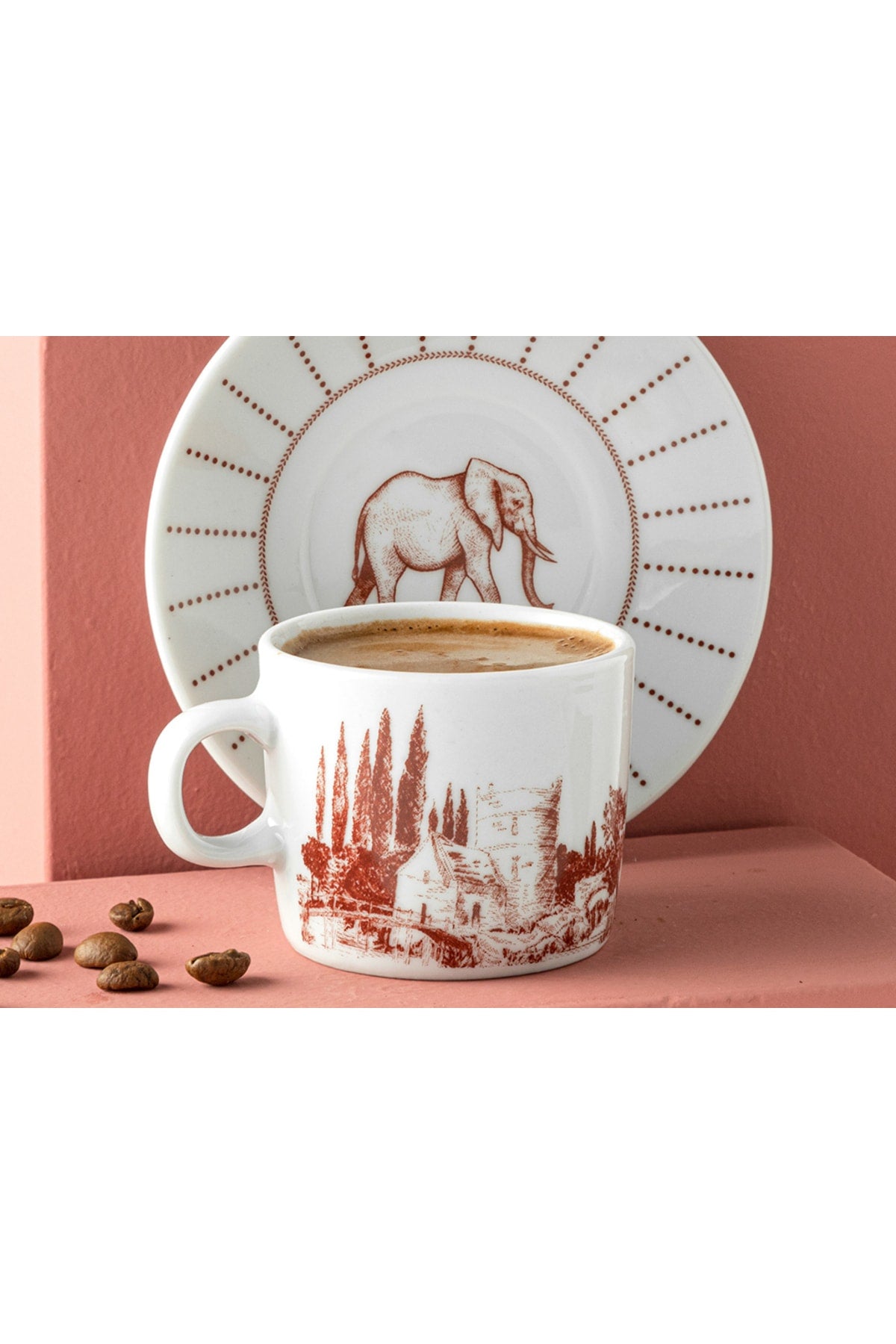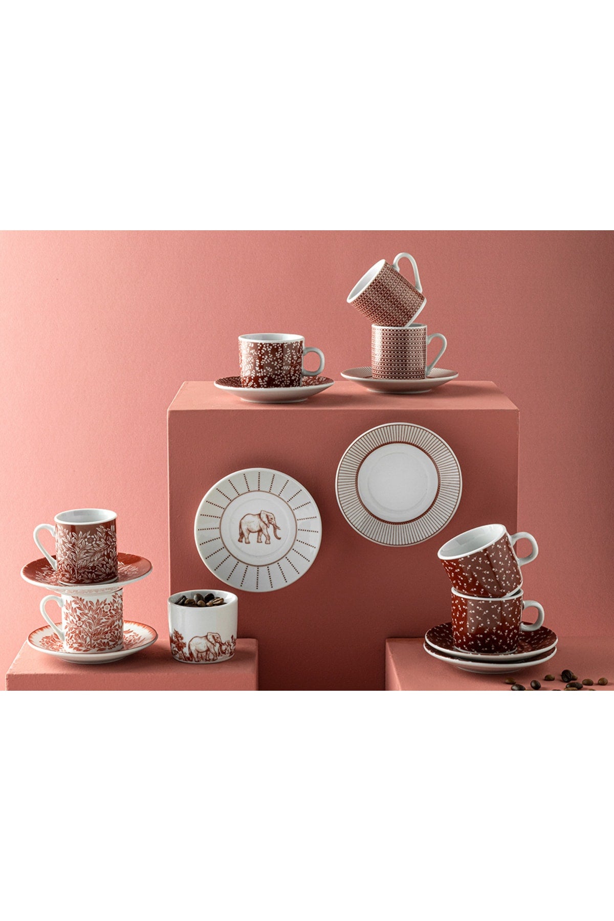 Elephant Porcelain Set Of 2 Coffee Cups 80 Ml Claret Red