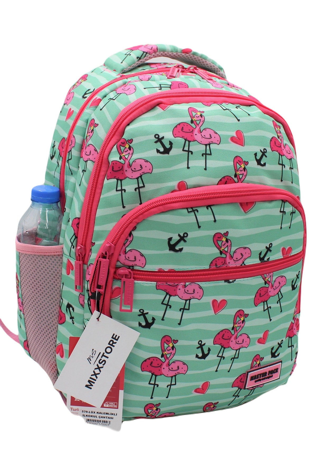 Flamingo Patterned Green Color Master Pack Girl Backpack Primary School Bag With Food And Pencil Holder