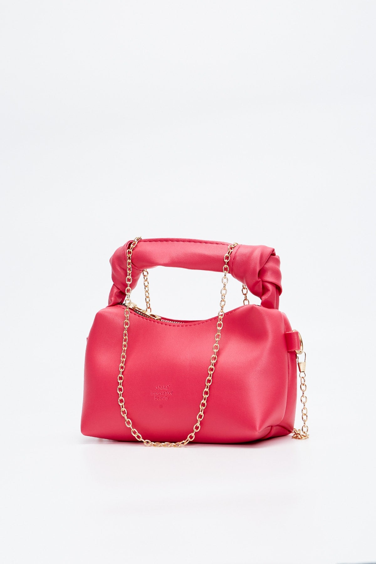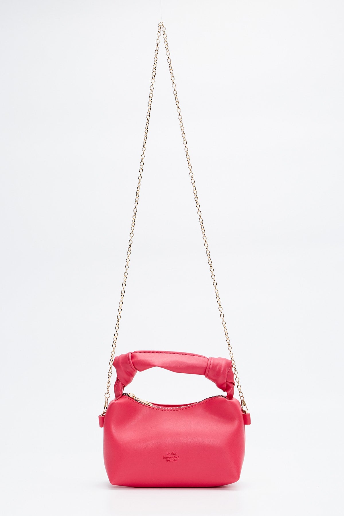 Fuchsia Shk24 Soft Leather Knot Detailed Chain Strap Hand And Shoulder Bag L:14 E:22 W:8 Cm