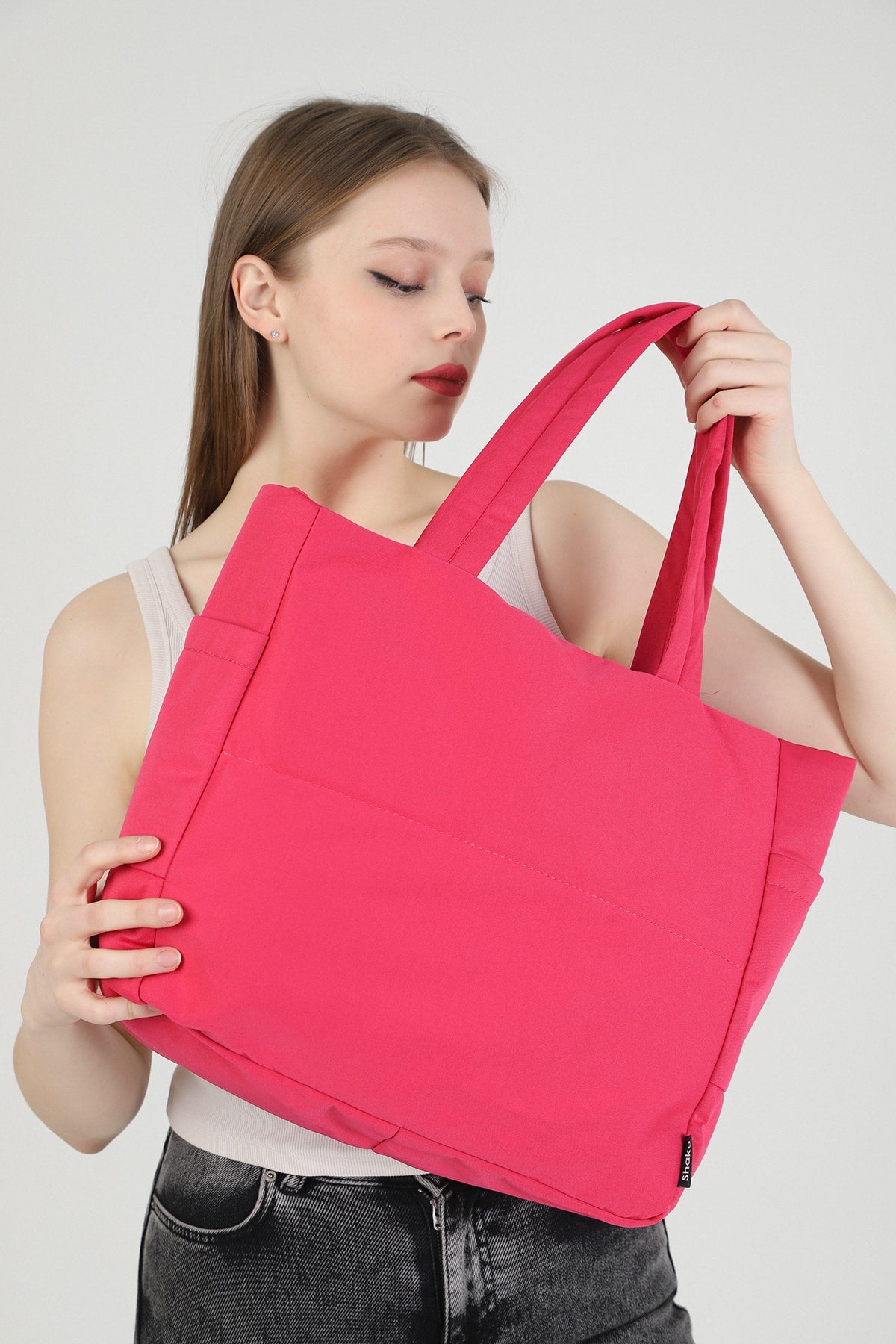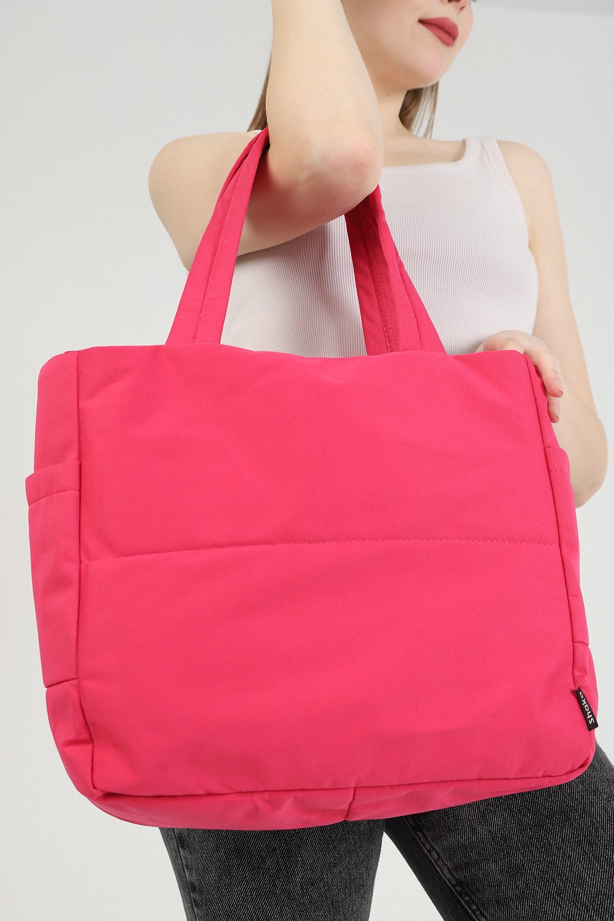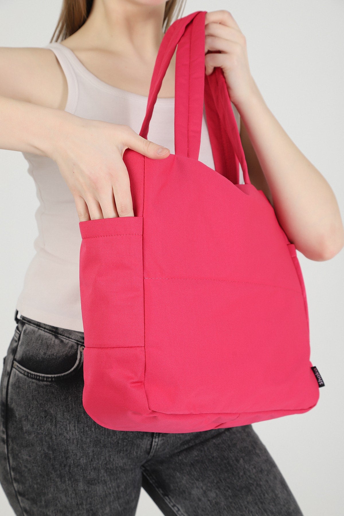 Fuchsia U25 3-Compartment Side 2 Pocket Detailed Zipper Closure Canvas Women'S Arm And Shoulder Bag B:35 E:35 G