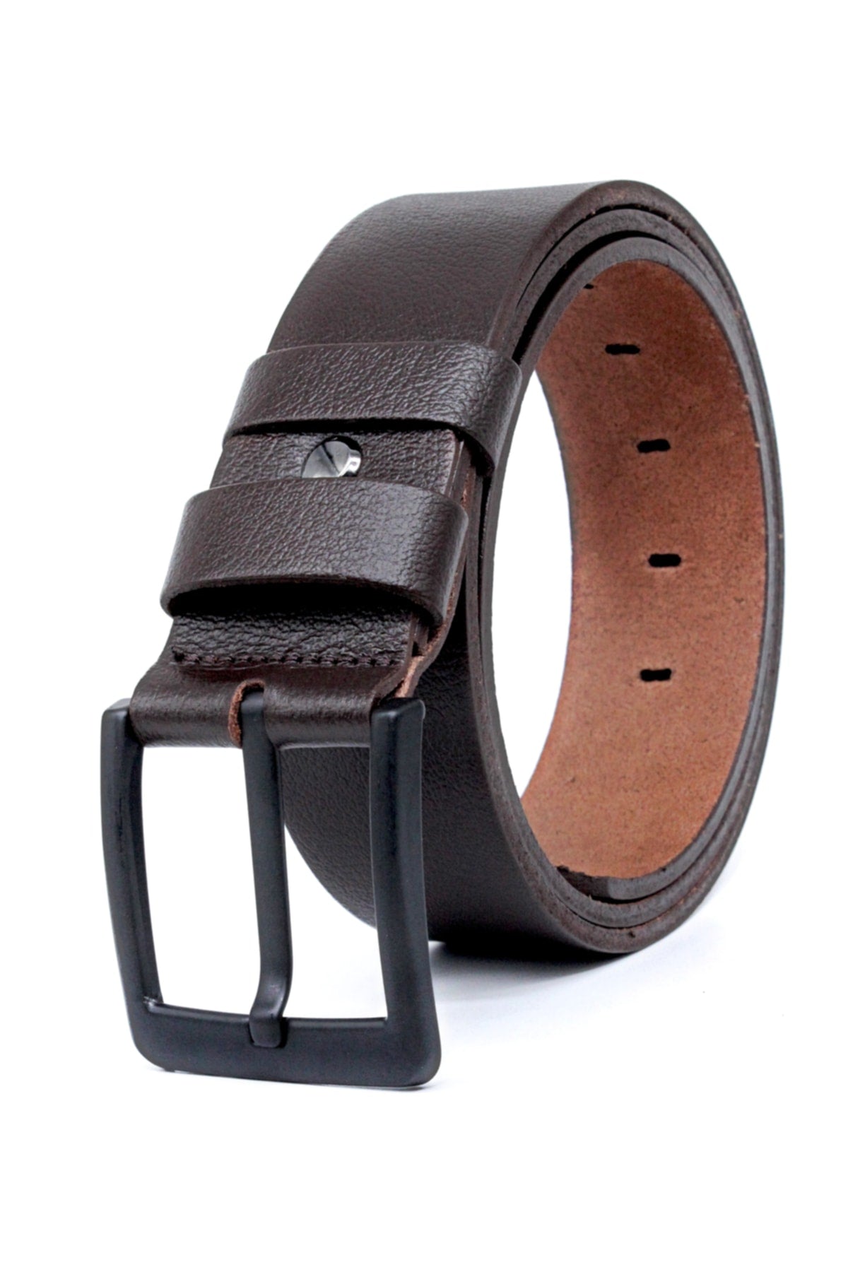Genuine Buffalo Leather Brown Buckle Men'S Denim Belt 4.5 Cm