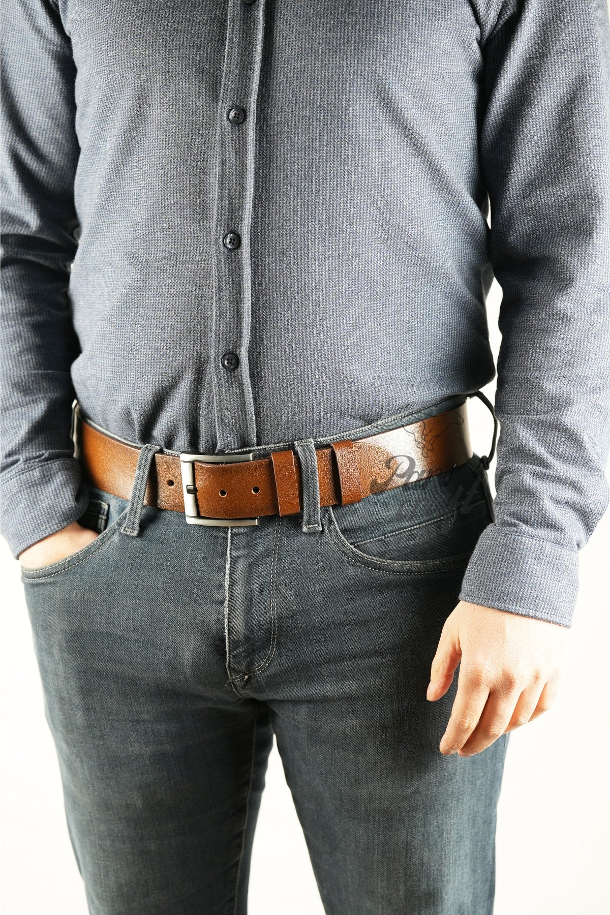 Genuine Buffalo Leather Men'S Belt 4.5 Cm Tan Jeans Sport Belt