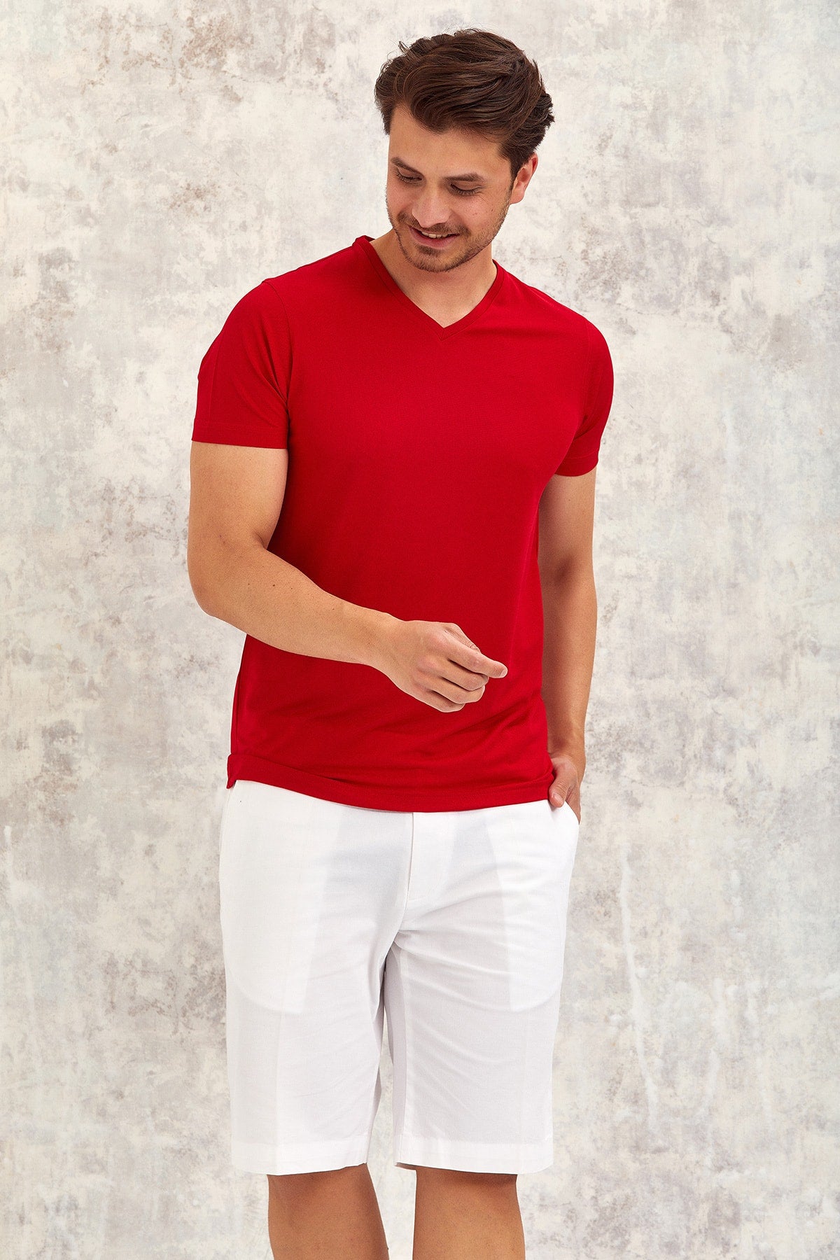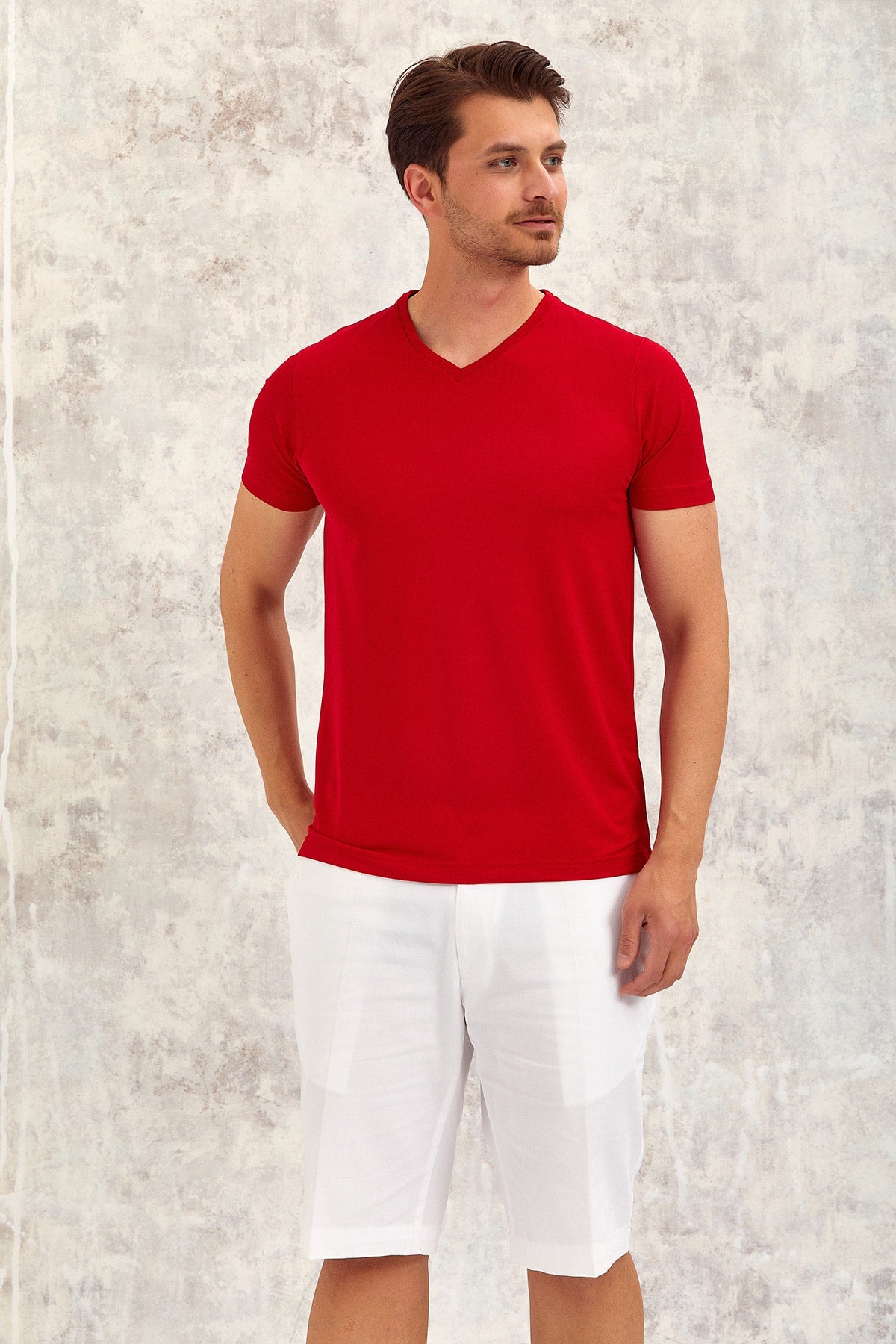 Gimaldo Men'S V-Neck T-Shirt - Red
