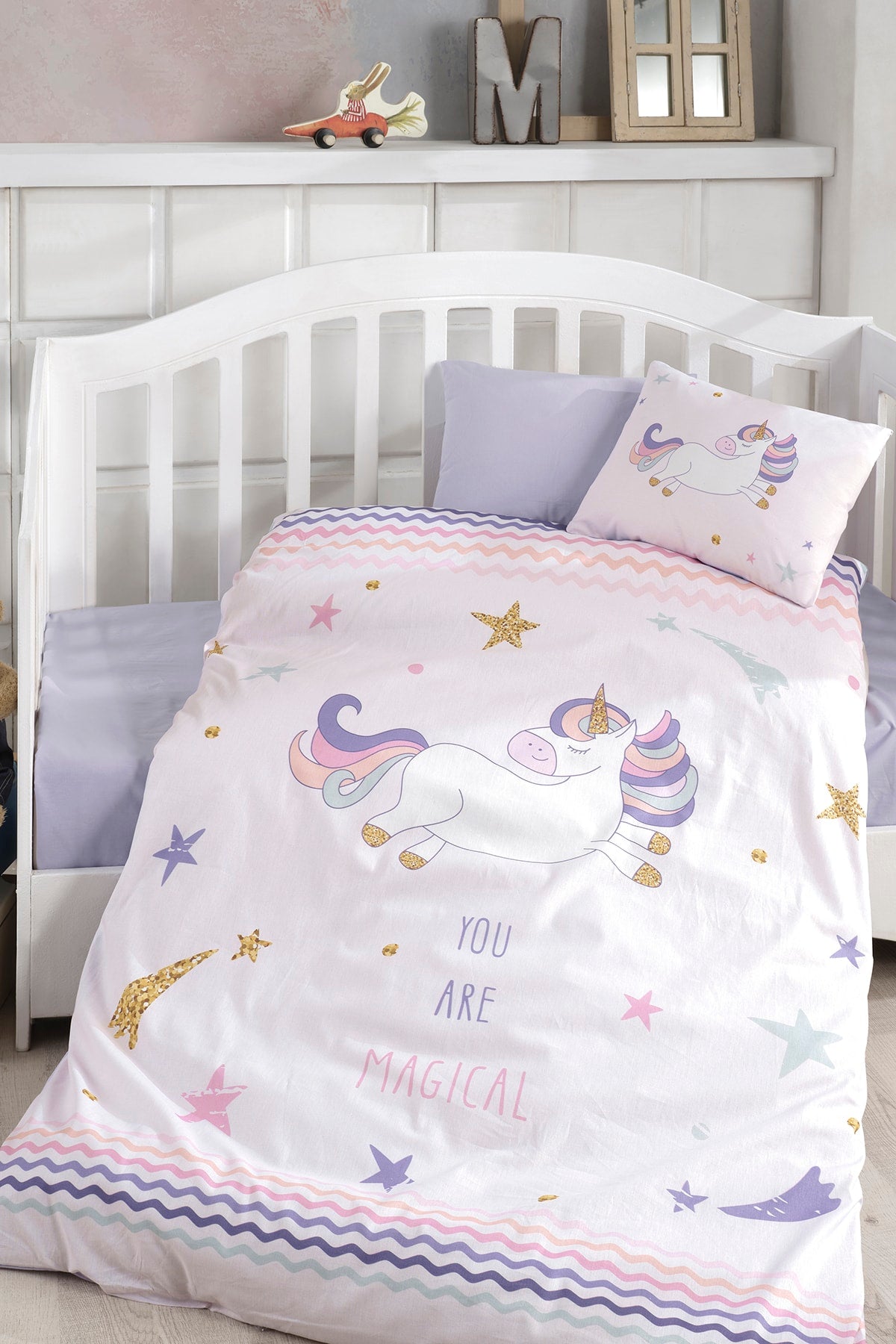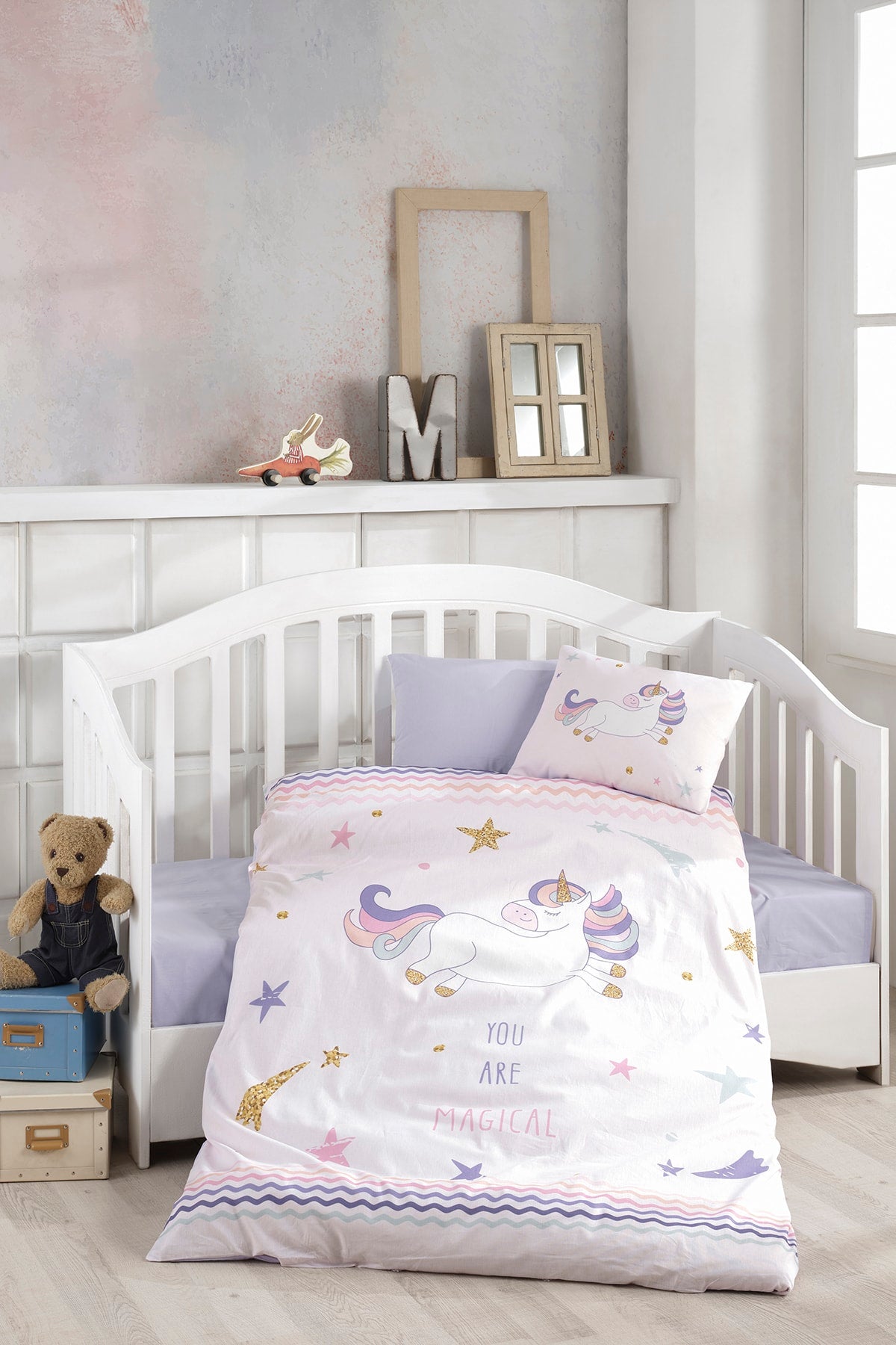 Girl Child Purple Digital Printed 3D Cotton Baby Duvet Cover Set