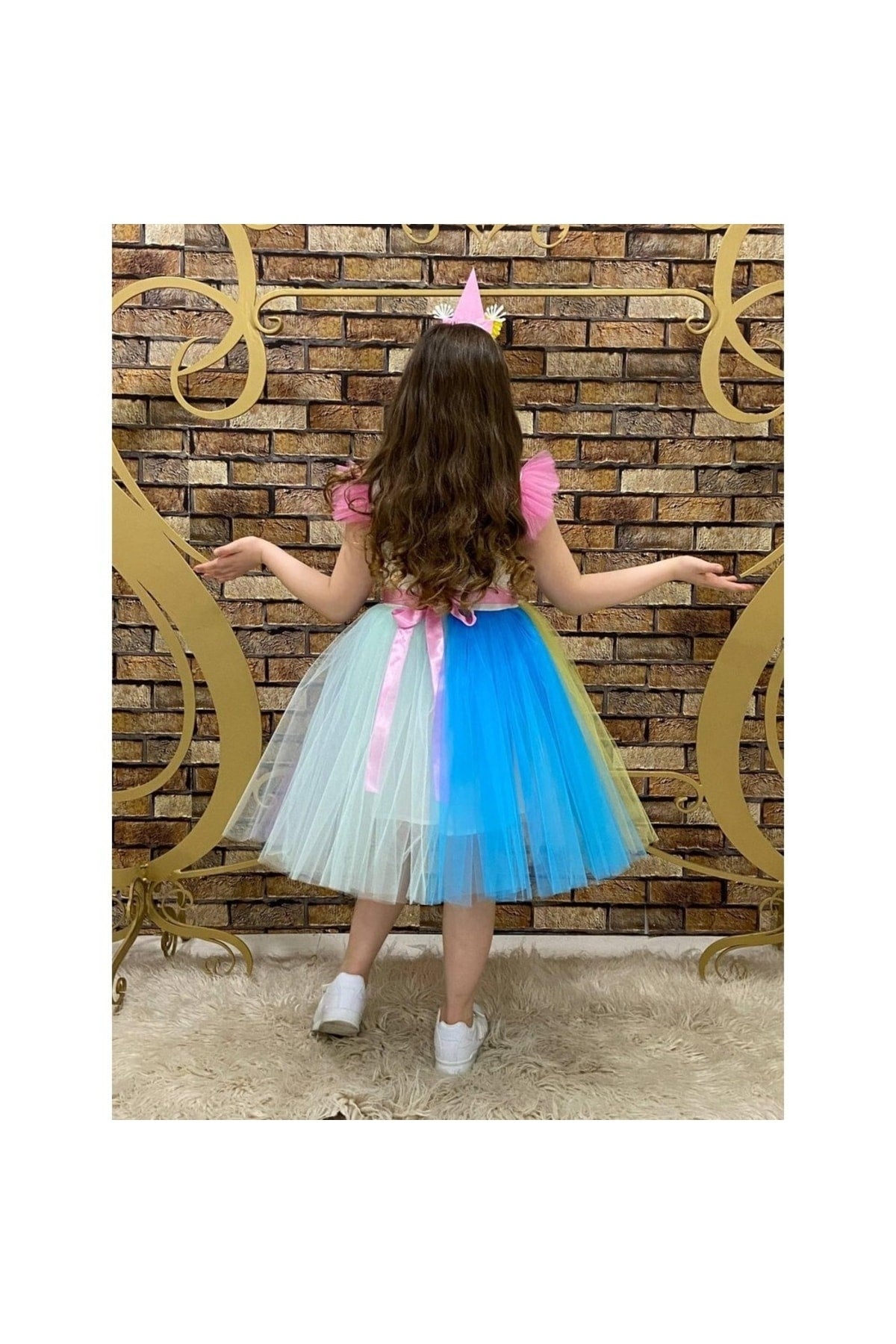 Girl'S Colorful Birthday Unicorn Ribbon Zipper Dress