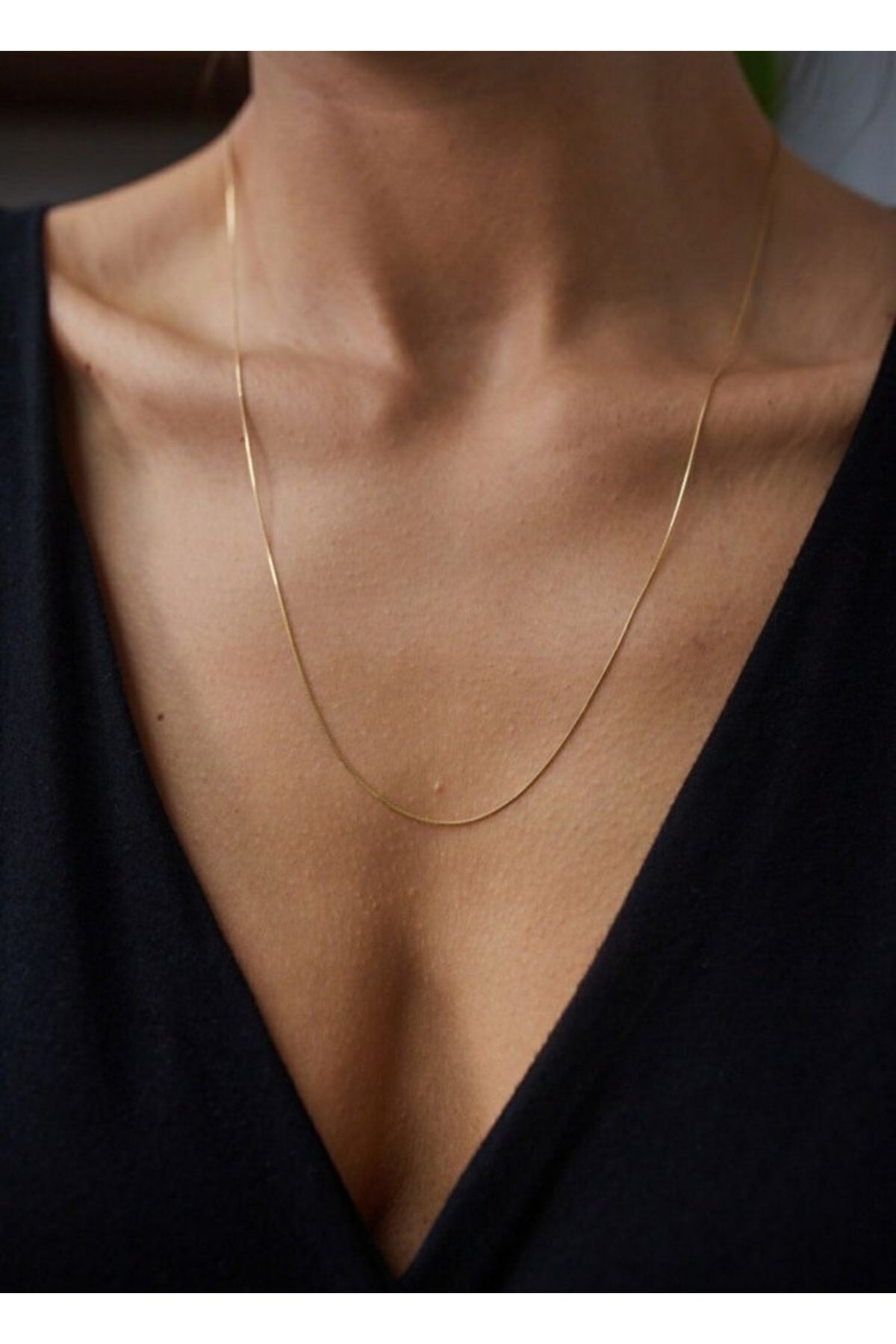 Gold Color 60 Cm Unisex Steel Thin Italian Chain Necklace