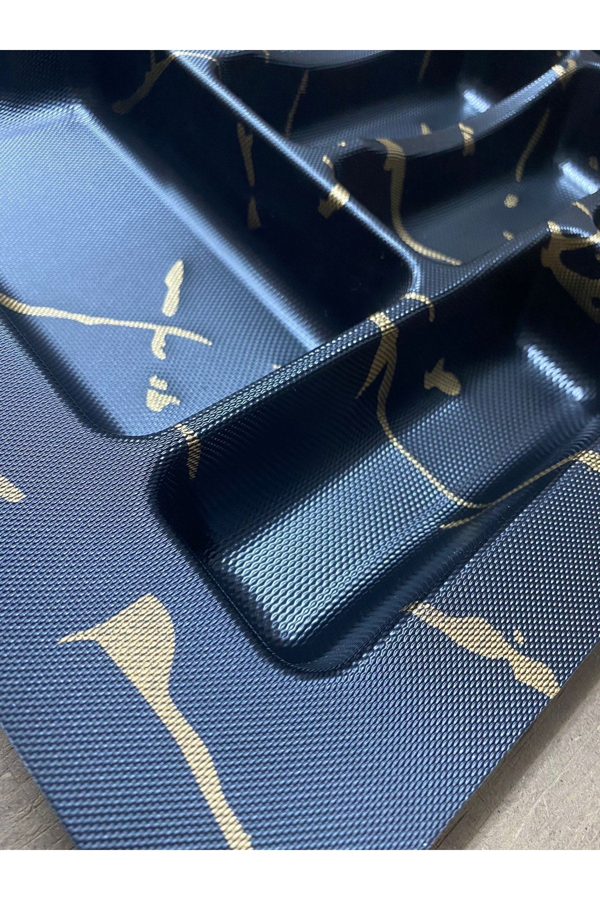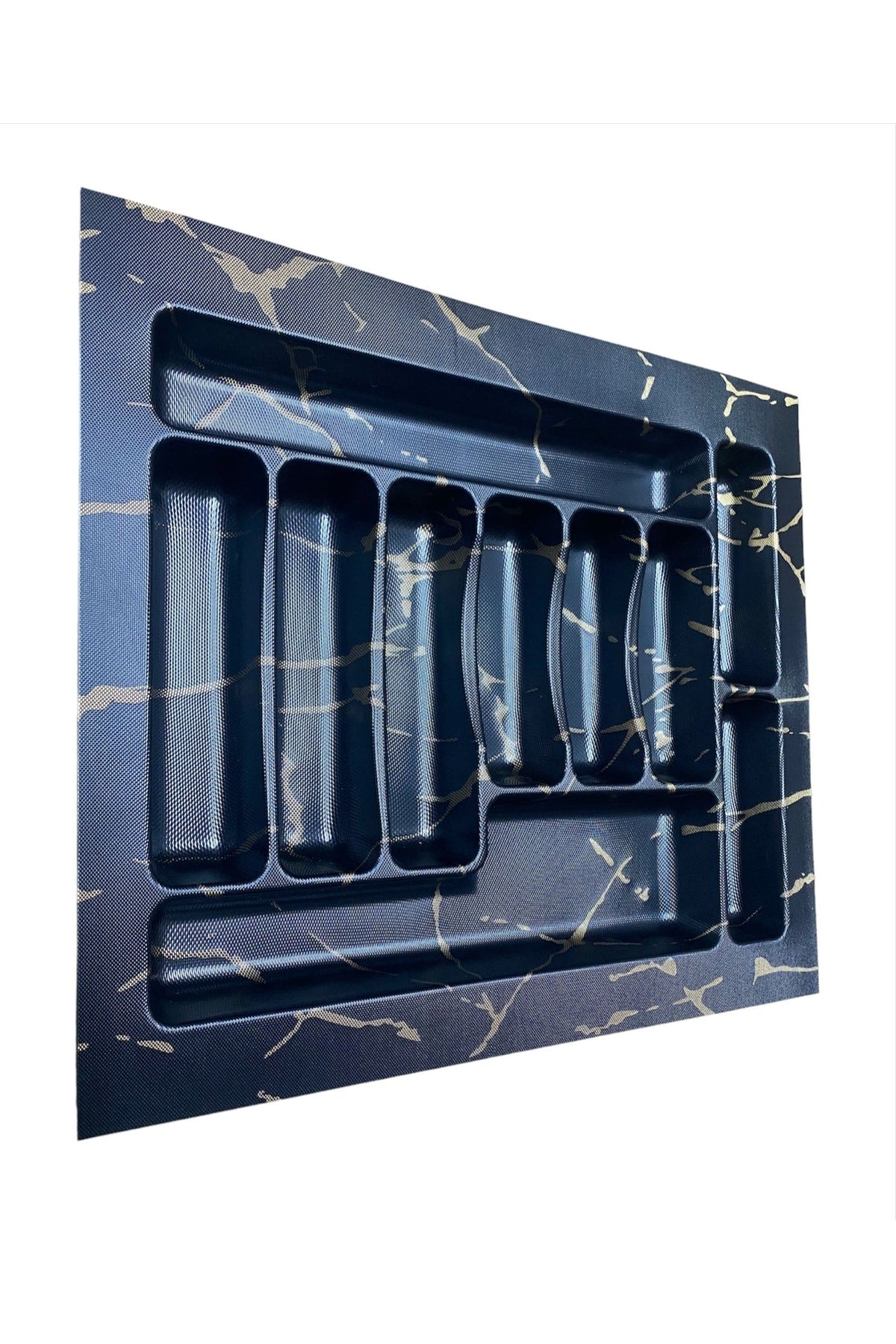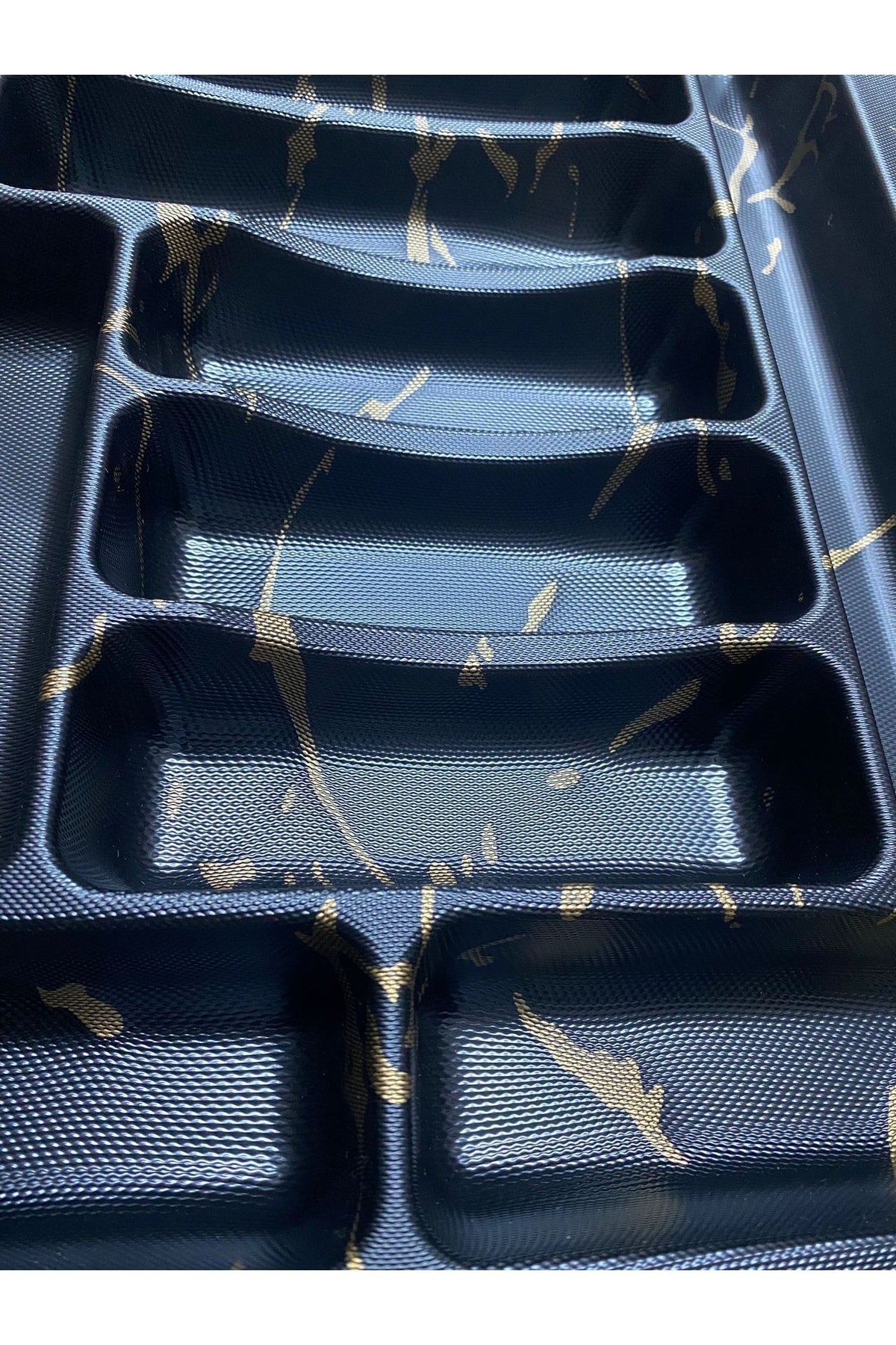 Gold Detailed Black Drawer Organizer Cutlery, Scoop Holder 55X49 Cm Cuttable Hard Plastic