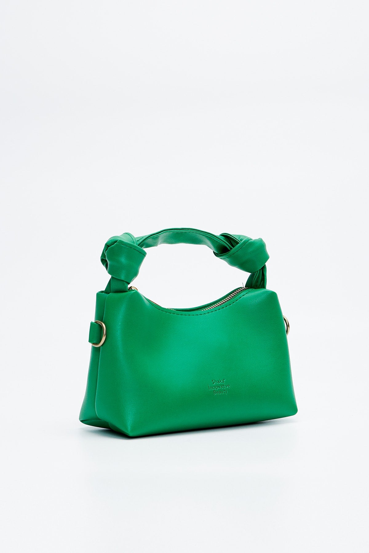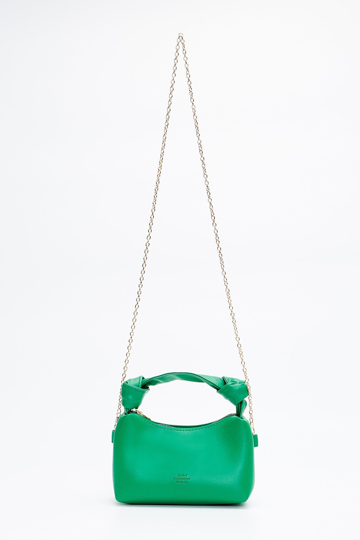 Grass Green Shk24 Soft Leather Knot Detailed Chain Strap Hand And Shoulder Bag L:14 E:22 W:8 Cm