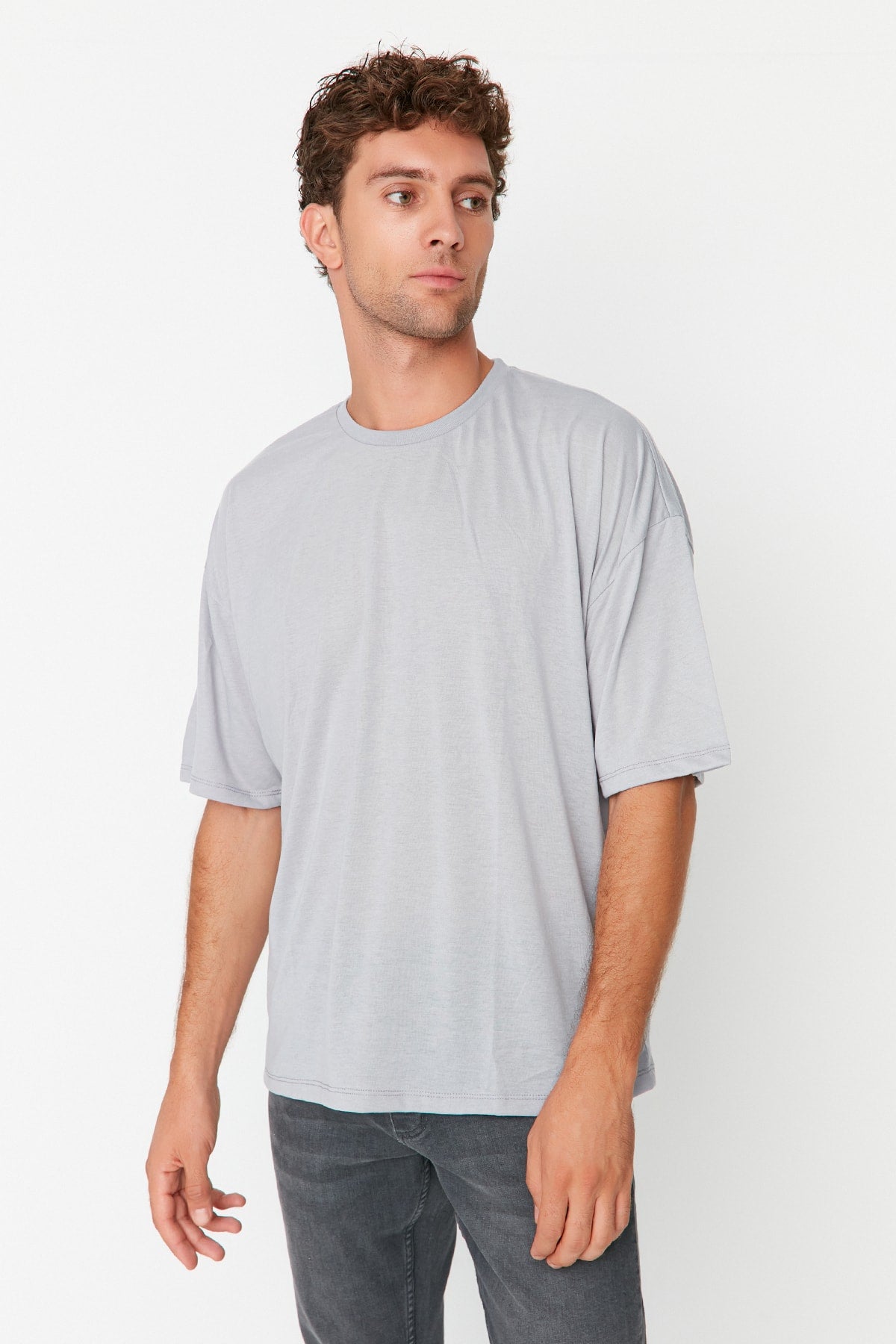 Gray Men'S Basic Crew Neck Oversize Short Sleeve T-Shirt Tmnss22Ts0300
