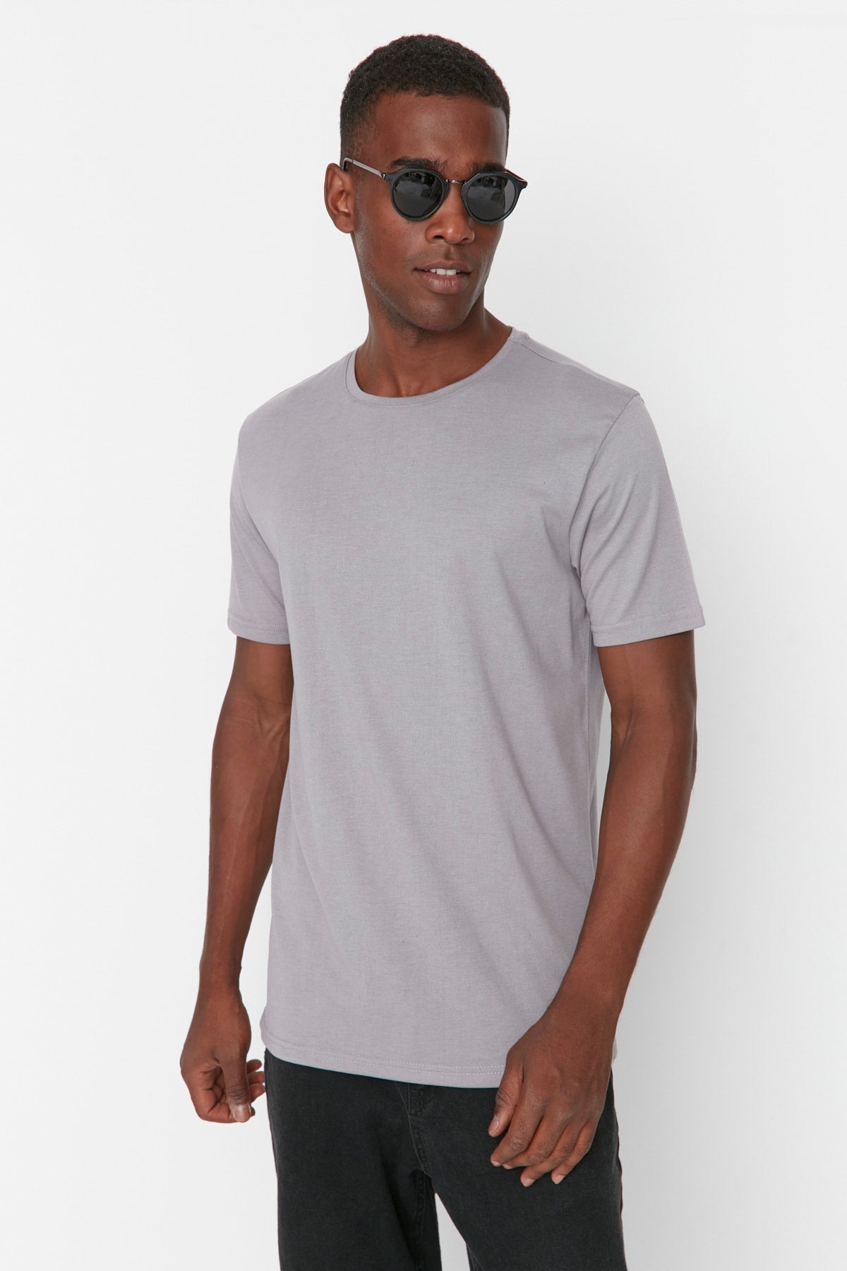 Gray Men'S Basic Regular/Normal Fit Crew Neck Short Sleeved T-Shirt Tmnss22Ts0271
