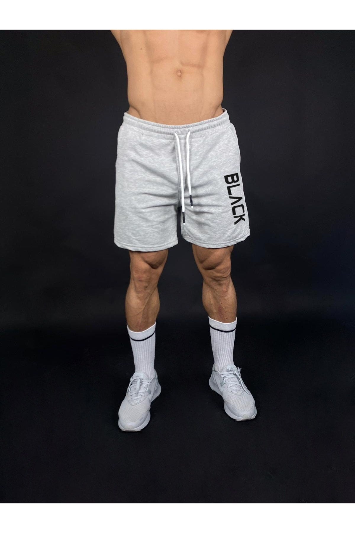Gray Men'S Black Printed Regular Fit Pocketed Shorts