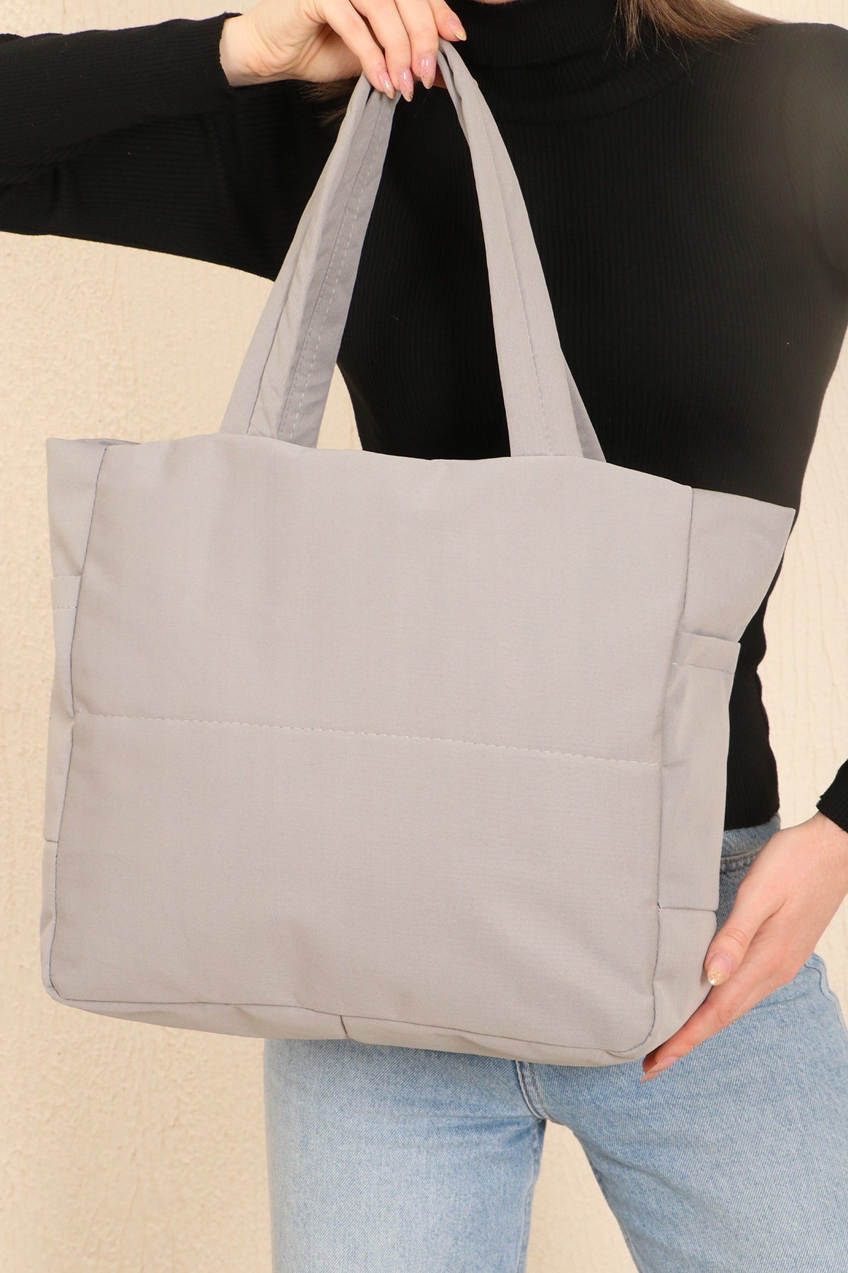Gray U25 3-Compartment Side 2 Pocket Detailed Zipper Closure Canvas Women'S Arm And Shoulder Bag B:35 E:35 G:1