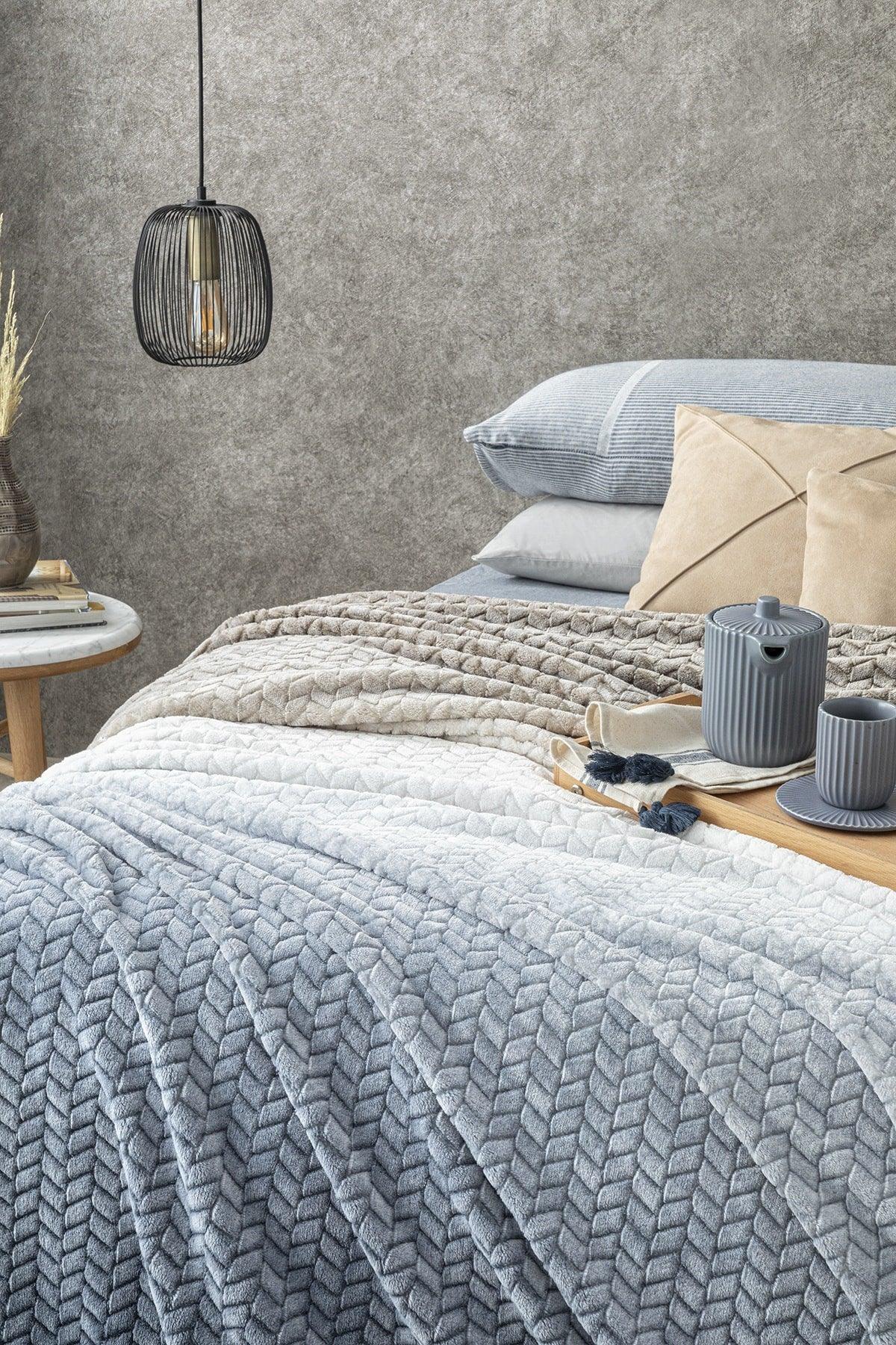 Sunrise Ombre Süper Yumuşak Çift -Blanket 200x220 cm Bej - Donanma