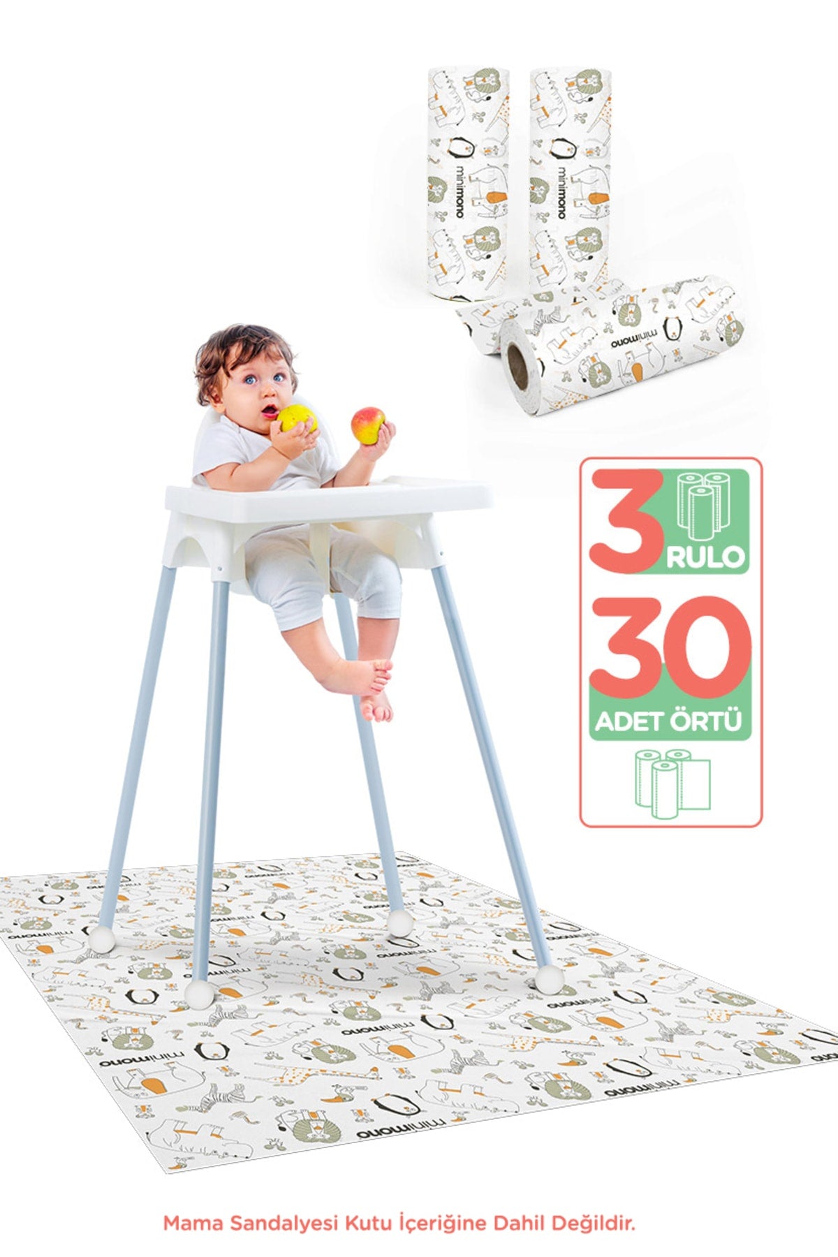 Highchair Under And Activity Supplementary Cover | 3-Pack 30 Pieces | Use Discard | Forest Animals