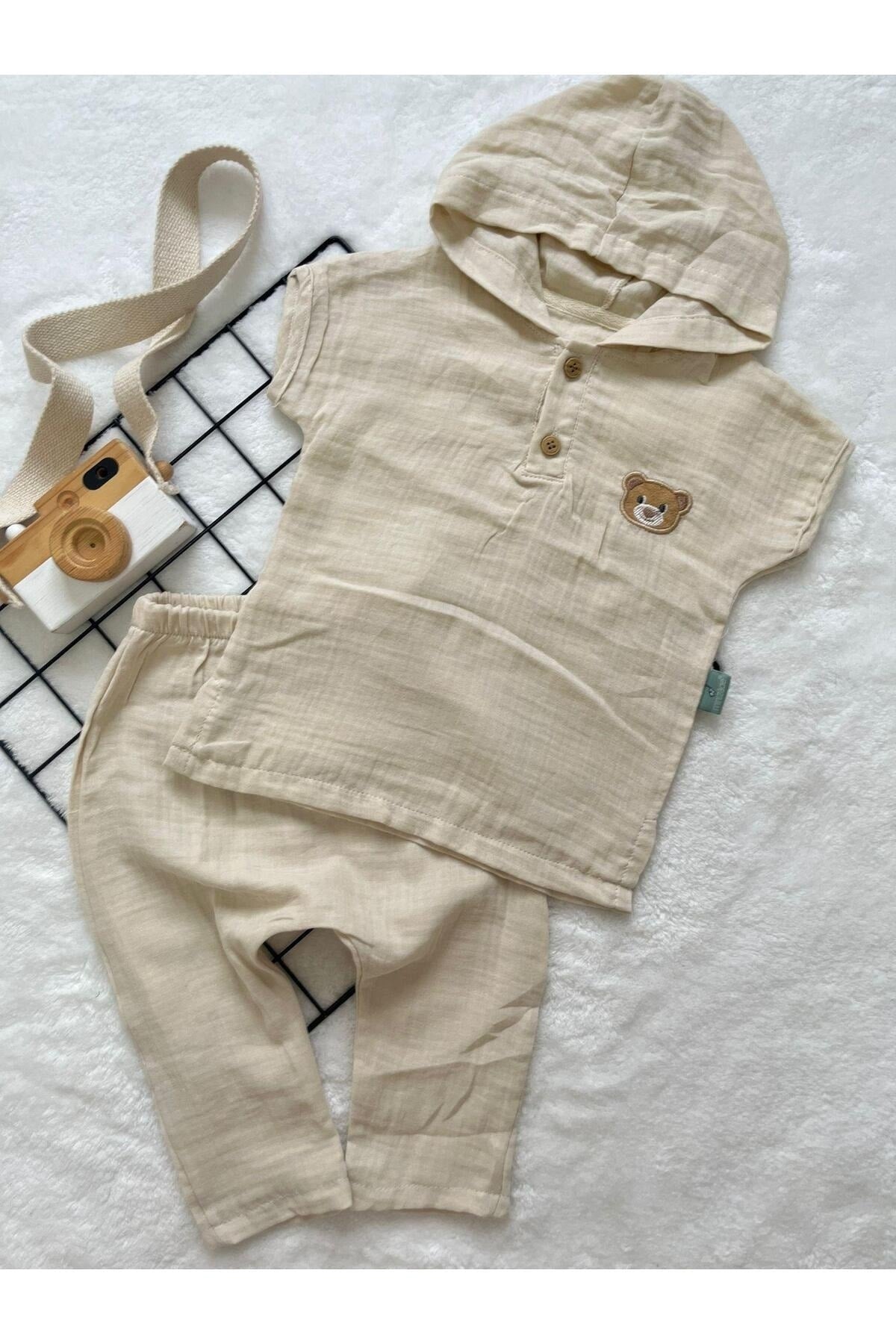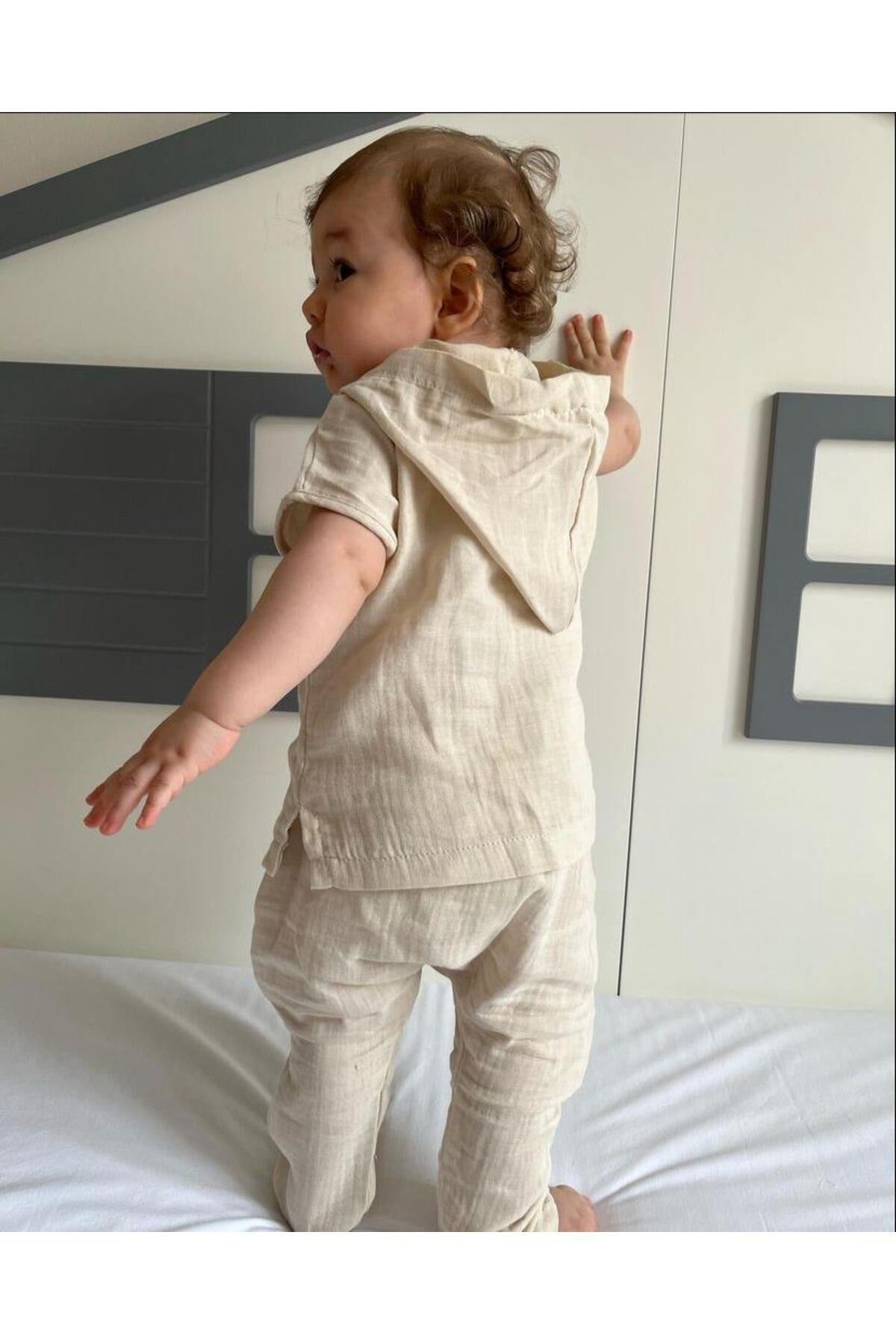 Hooded Organic Muslin Fabric Baby Set