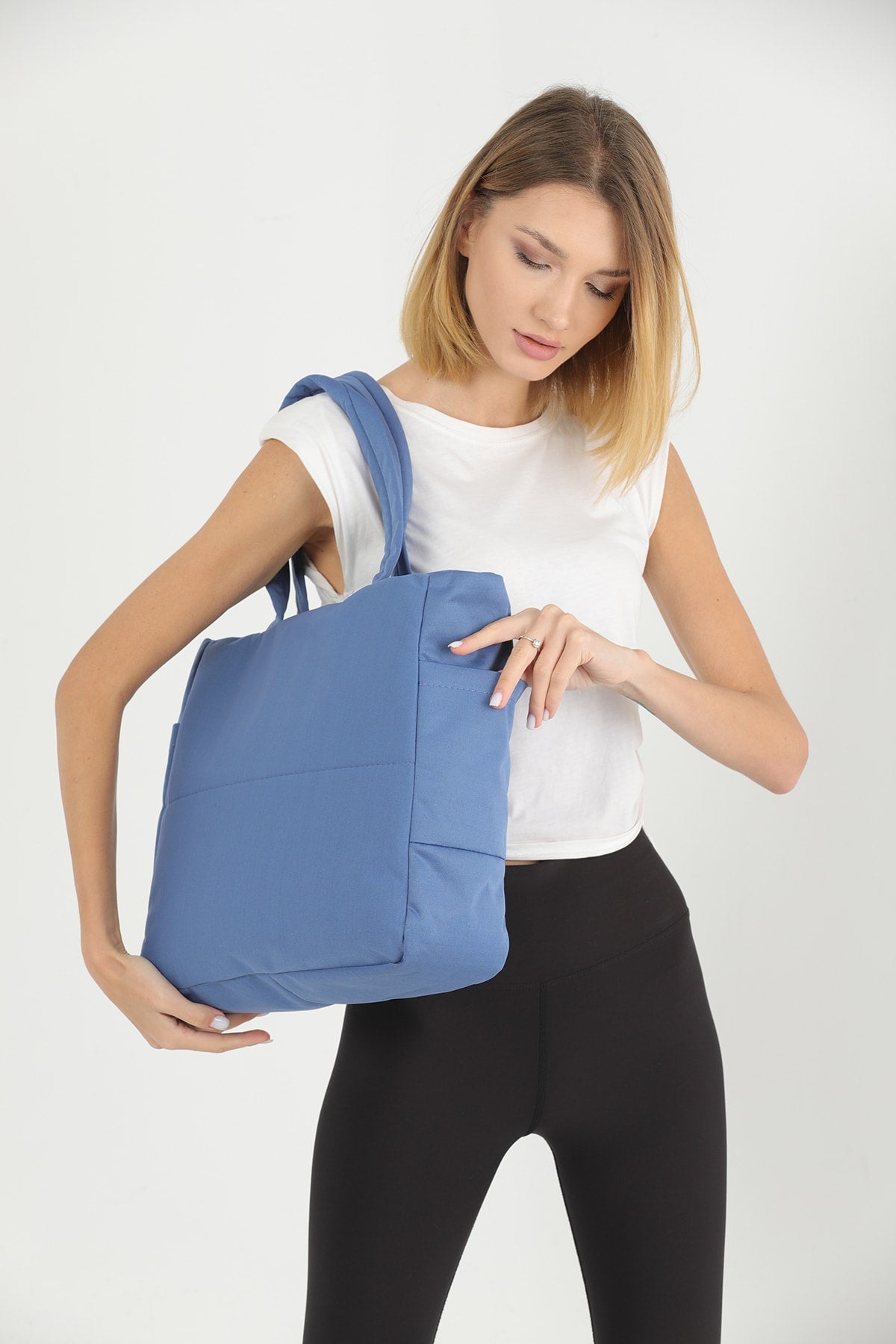 Indigo U25 3 Compartment Side 2 Pocket Detailed Zipper Closure Canvas Women'S Arm And Shoulder Bag B:35 E:35