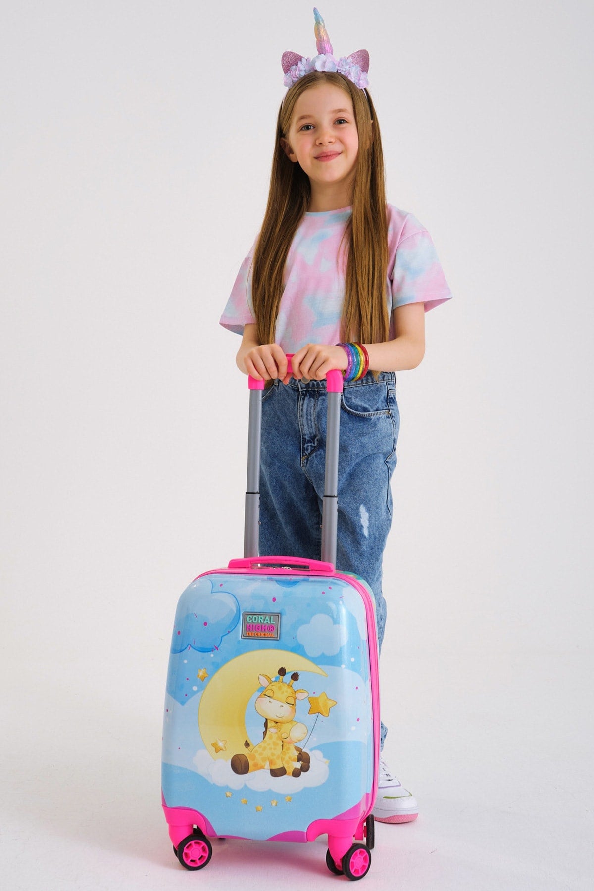 Kids Blue Pink Giraffe Patterned Child Suitcase 16719