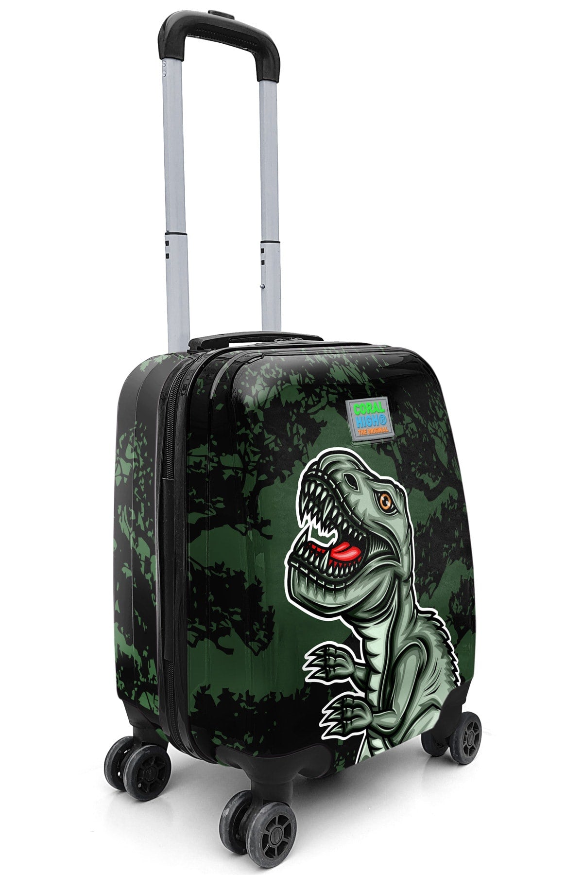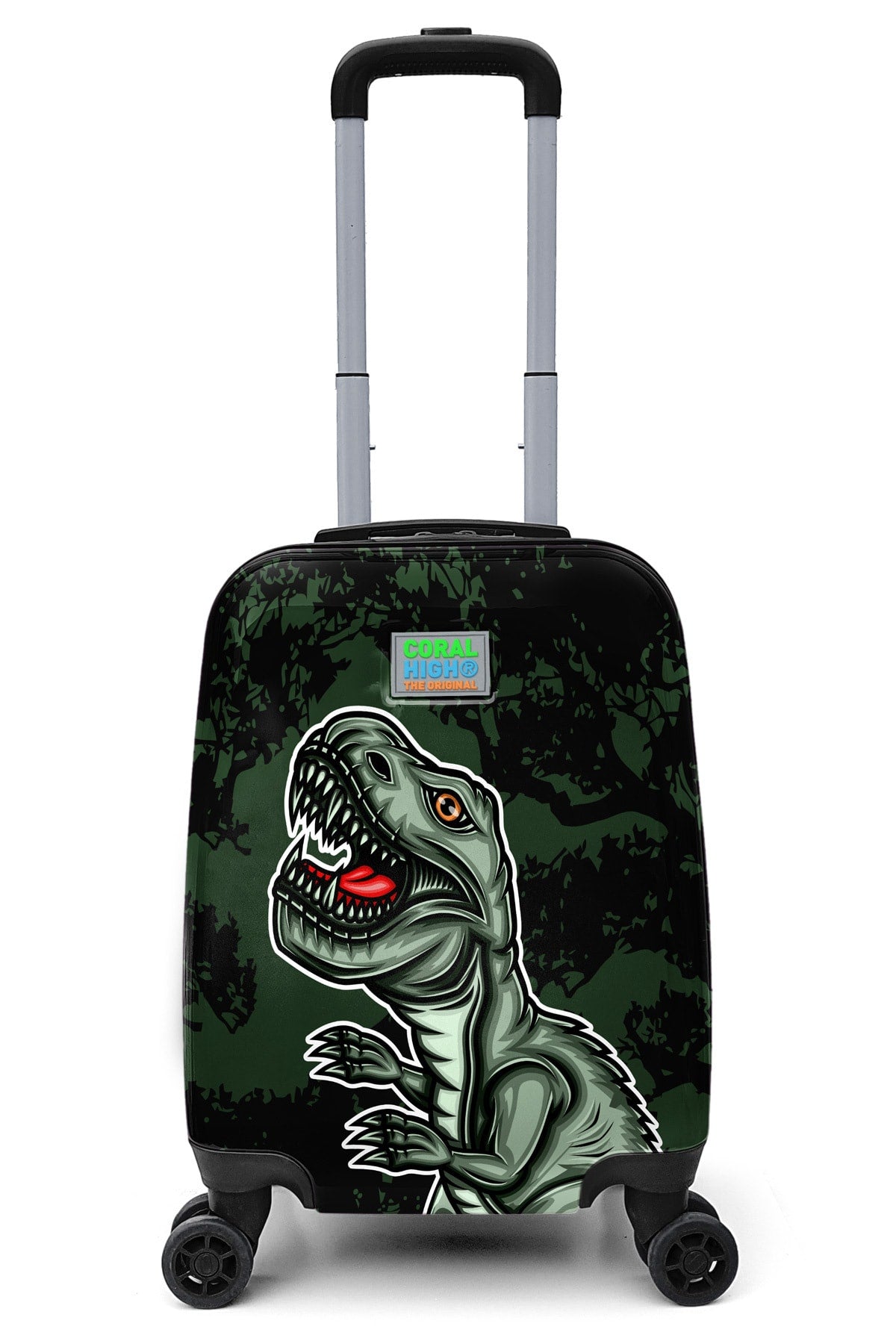 Kids Dark Green Black Dinosaur Patterned Child Suitcase 16744