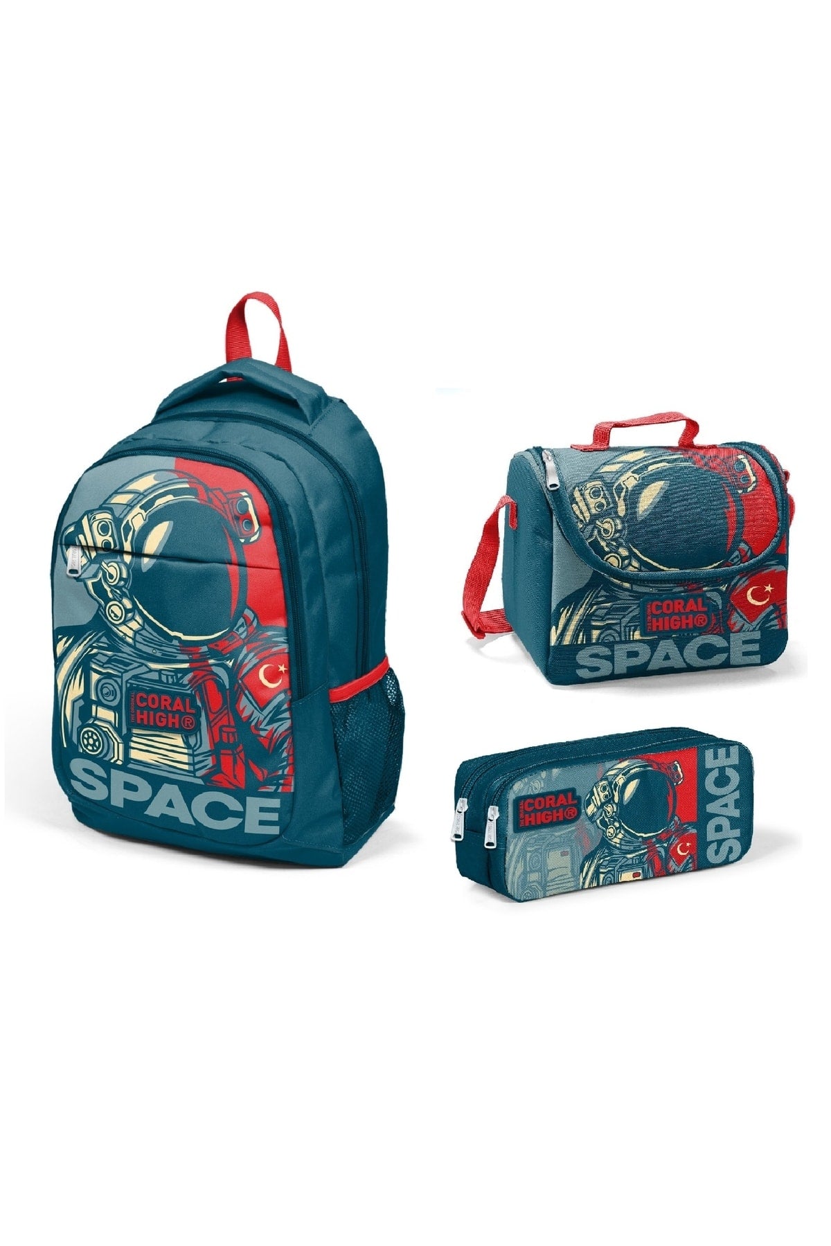 Kids Indigo Red Astronaut Patterned Triple School Backpack Set 14389