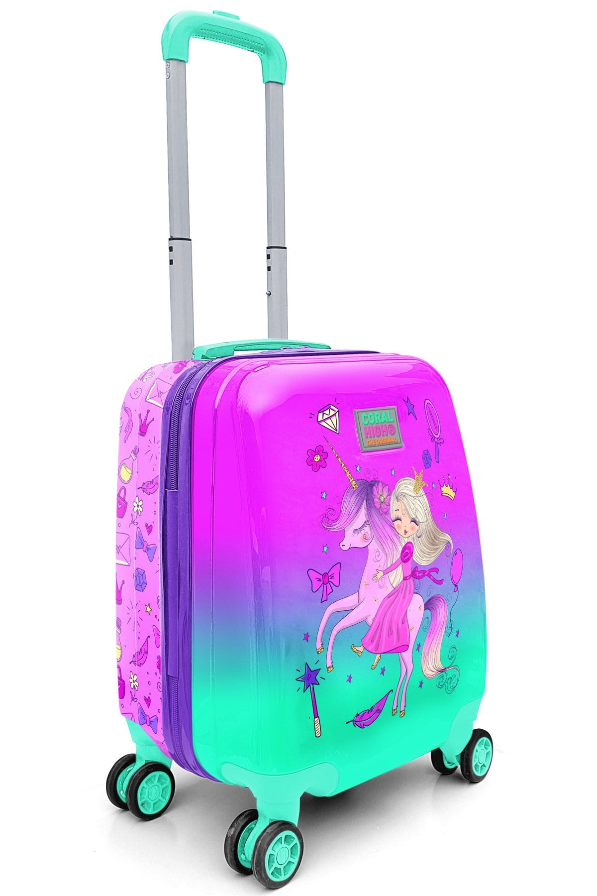 Kids Light Pink Purple Unicorn Princess Patterned Suitcase 16722