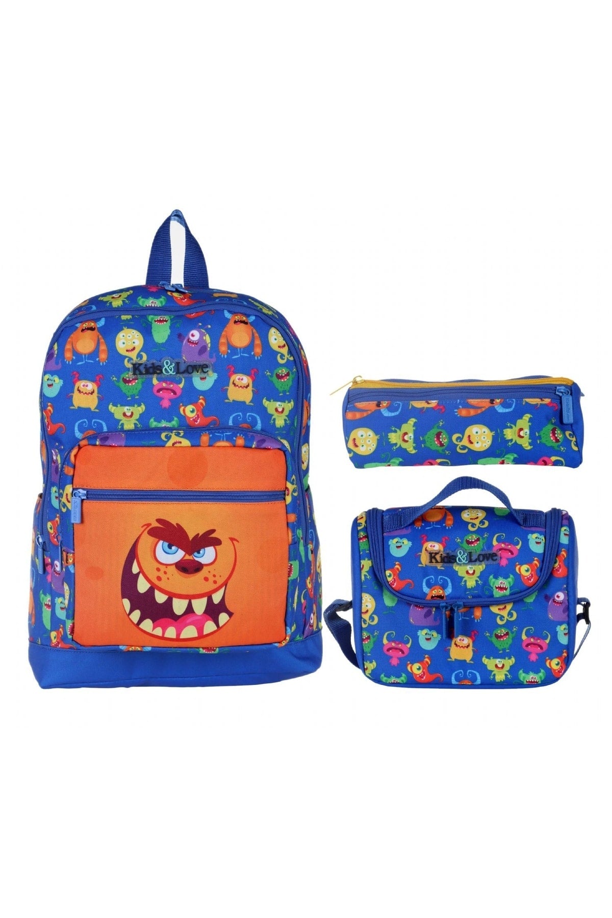 Kids&Love Blue Monsters Elementary School Bag Set - Boys