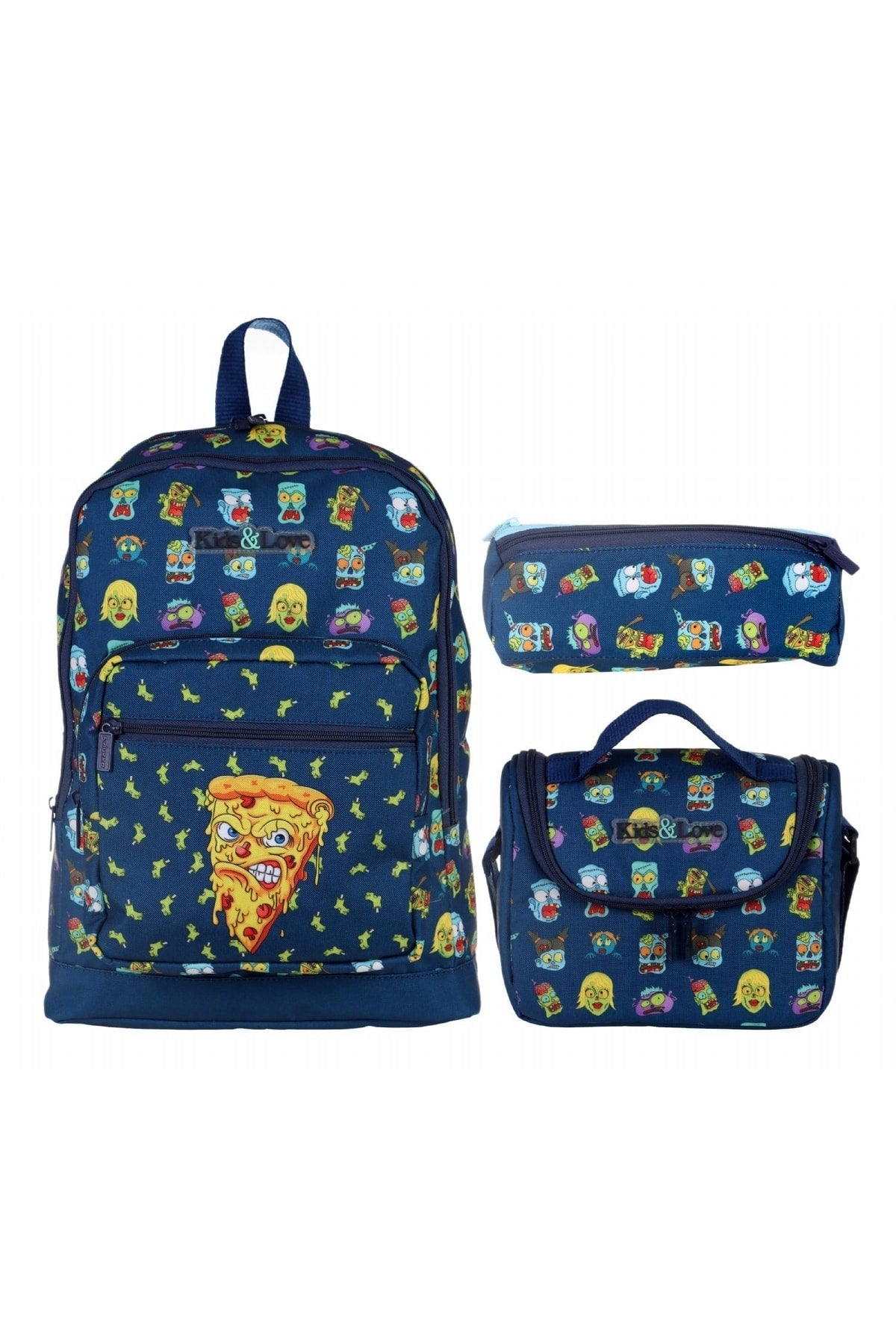 Kids&Love Navy Blue Zombie Pizza Primary School Bag Set - Boys