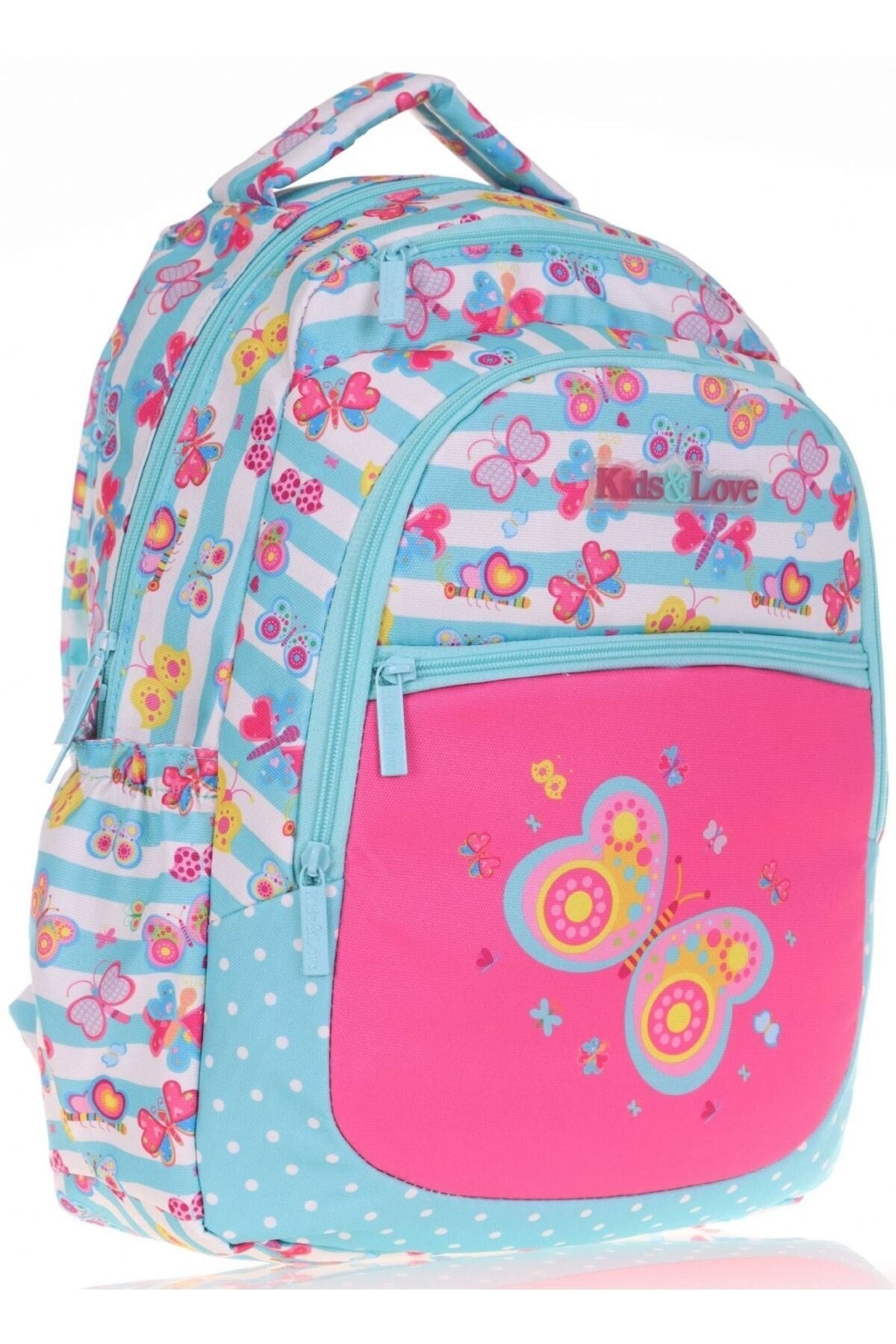 Kids&Love Pink-Turquoise Butterfly Primary School Bag And Lunch Set - Girls