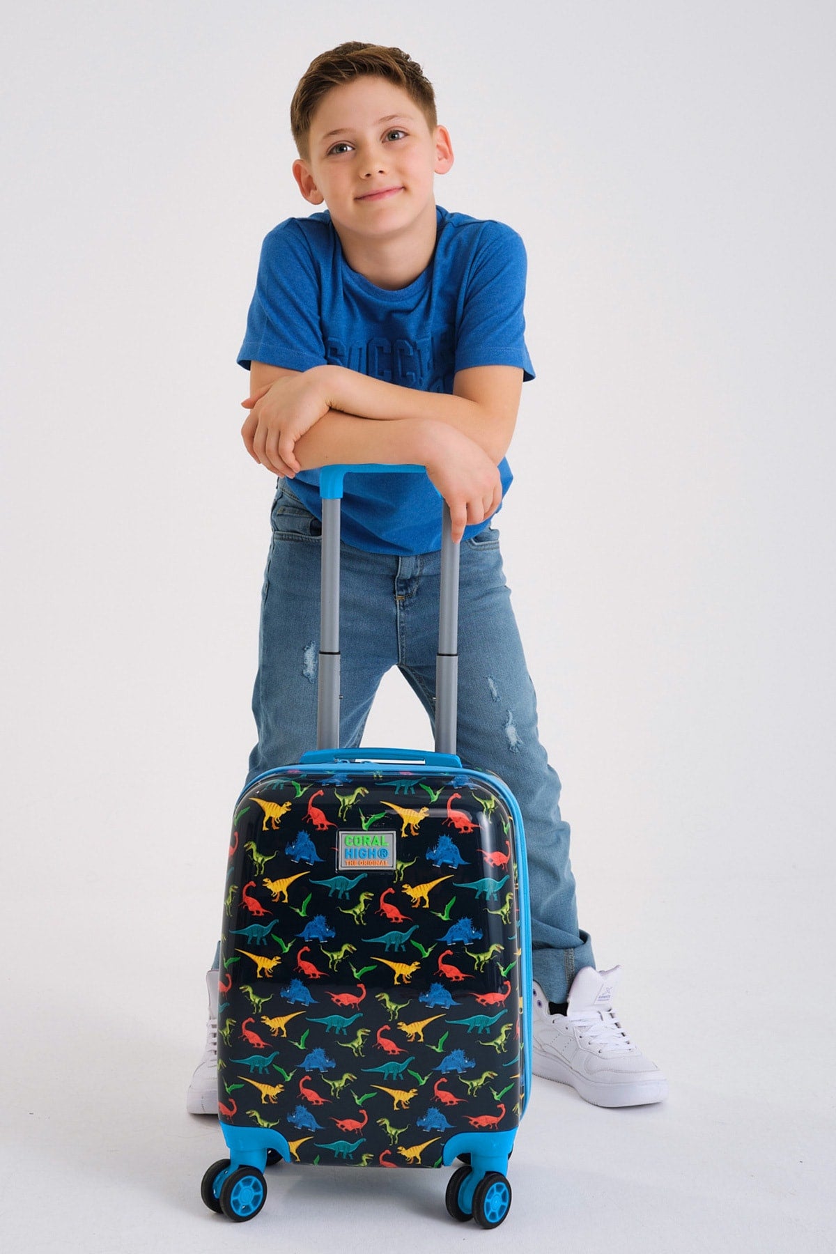 Kids Navy Blue Dinosaur Patterned Child Suitcase 16748