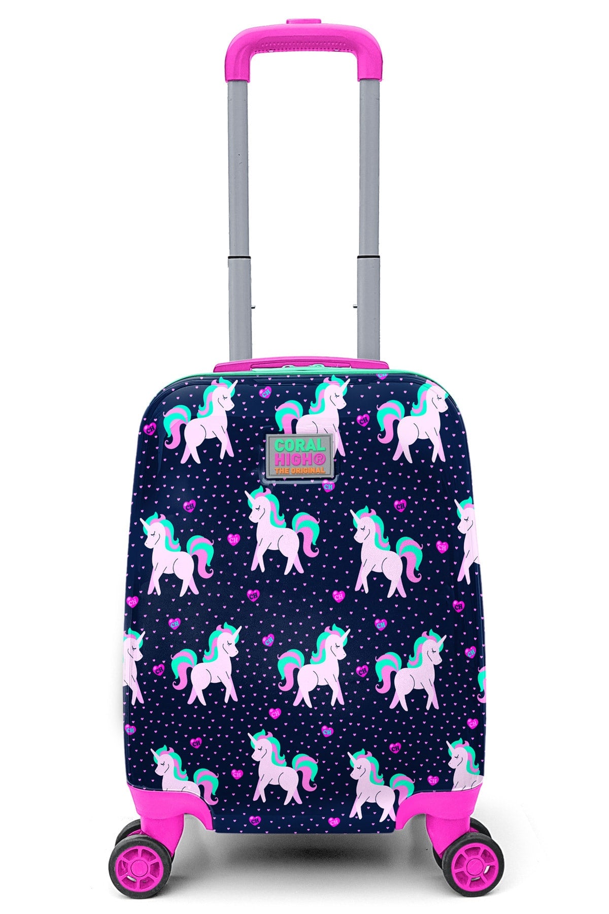 Kids Navy Blue Pink Unicorn Patterned Child Suitcase 16713